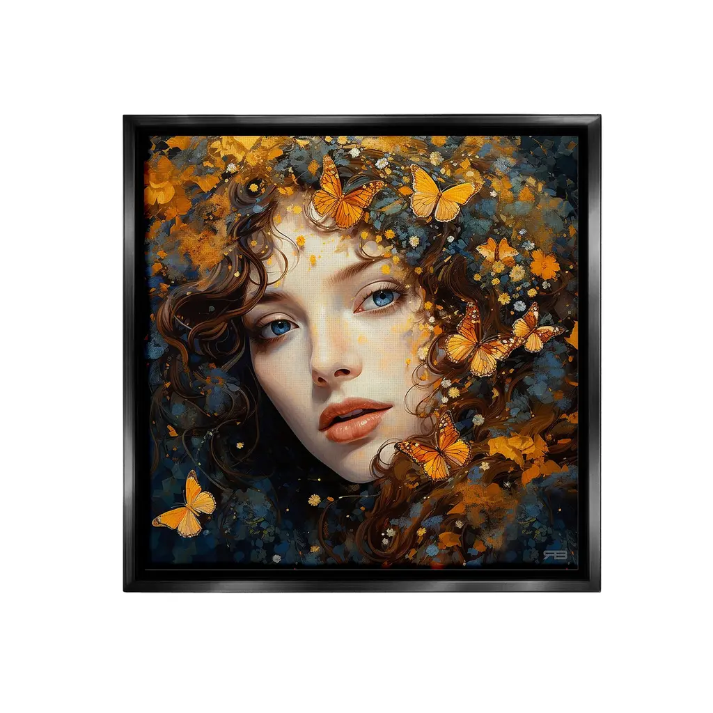 Stupell Woman With Monarch Butterflies Framed Floater Canvas Wall Art Design By Rb - 25 X 25 - Gold