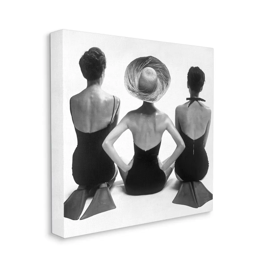 Stupell Women Sitting Beach Monochrome Vintage Swimsuits Flippers Canvas Wall Art, Design By Graffitee Studios - 24 X 24