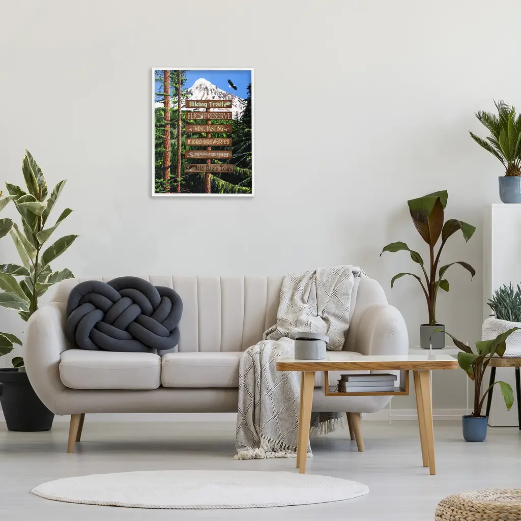 Add dimension to any room with our textured Framed Giclee Artwork. Our framed artwork is securely mounted into a 1.5-inch thick wood grain frame and ready to hang. Frames are available in three alluring styles: black, gray farmhouse and white. In addition, you should check out our oversized options if you want a statement piece. Stupell Wall Art is made in the USA.Features: Dimensions: 11 x 1.5 x 14 FramedFramed Giclee Products are available in the sizes 11"x14", 16"x20" or 24"x30". All Framed Giclee Products have a 1.5" Depth. Wall Art is Ready to Hang with Hardware Free Hanging. No installation required. For Easy Set Up Lean or Layer Artwork on Shelf or Against Wall.Our giclée prints are carefully mounted on a durable MDF backing, and then perfectly finished in a 1.5 inch thick woodgrain frame. Mounted frame colors include black, gray farmhouse and white. Made In USA.Artwork Relates To: Plant, Vegetation, Tree, Land, Nature, Woodland, Animal, Bird, Sign, Forest, Mountain, HikingDesign by Gail Fraser