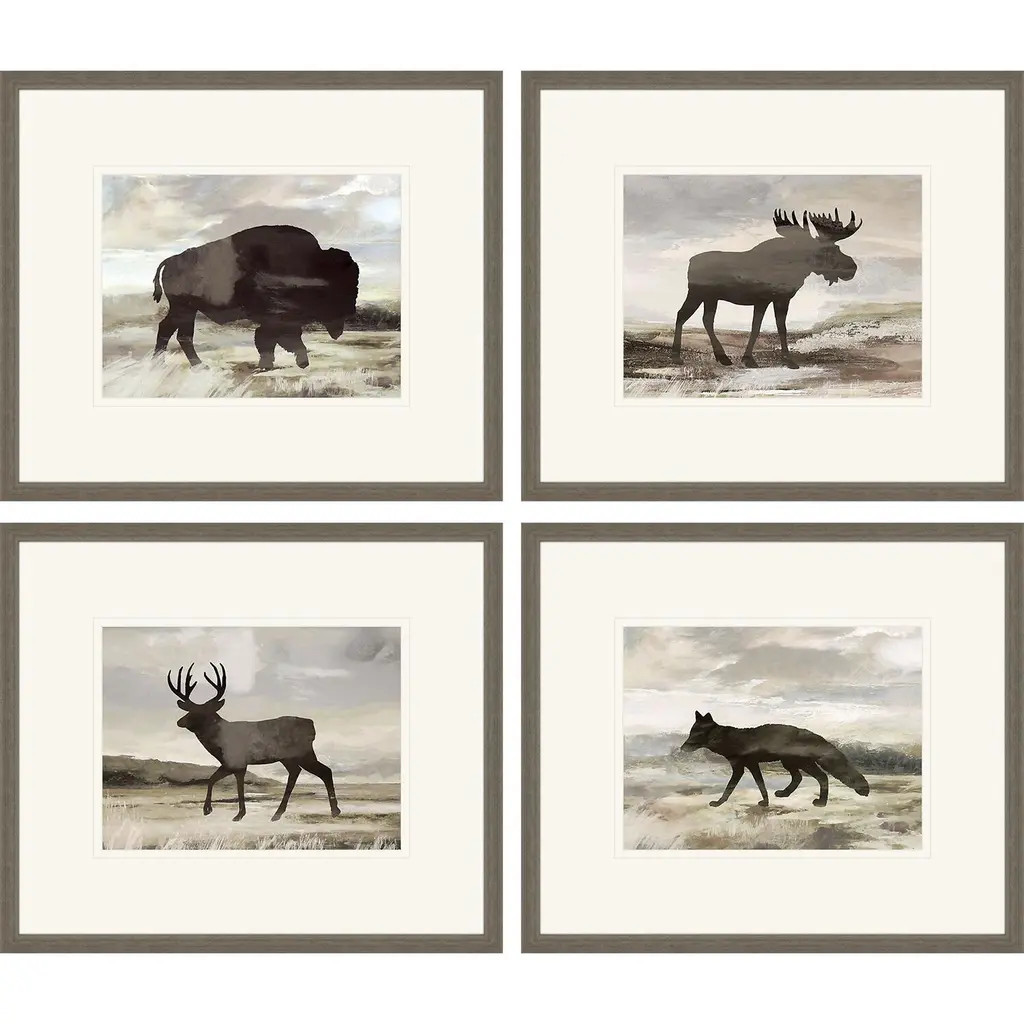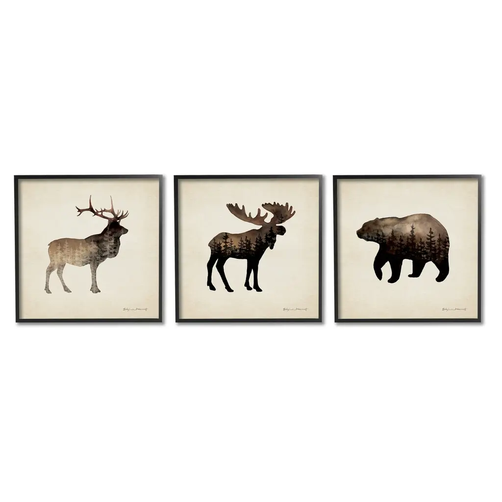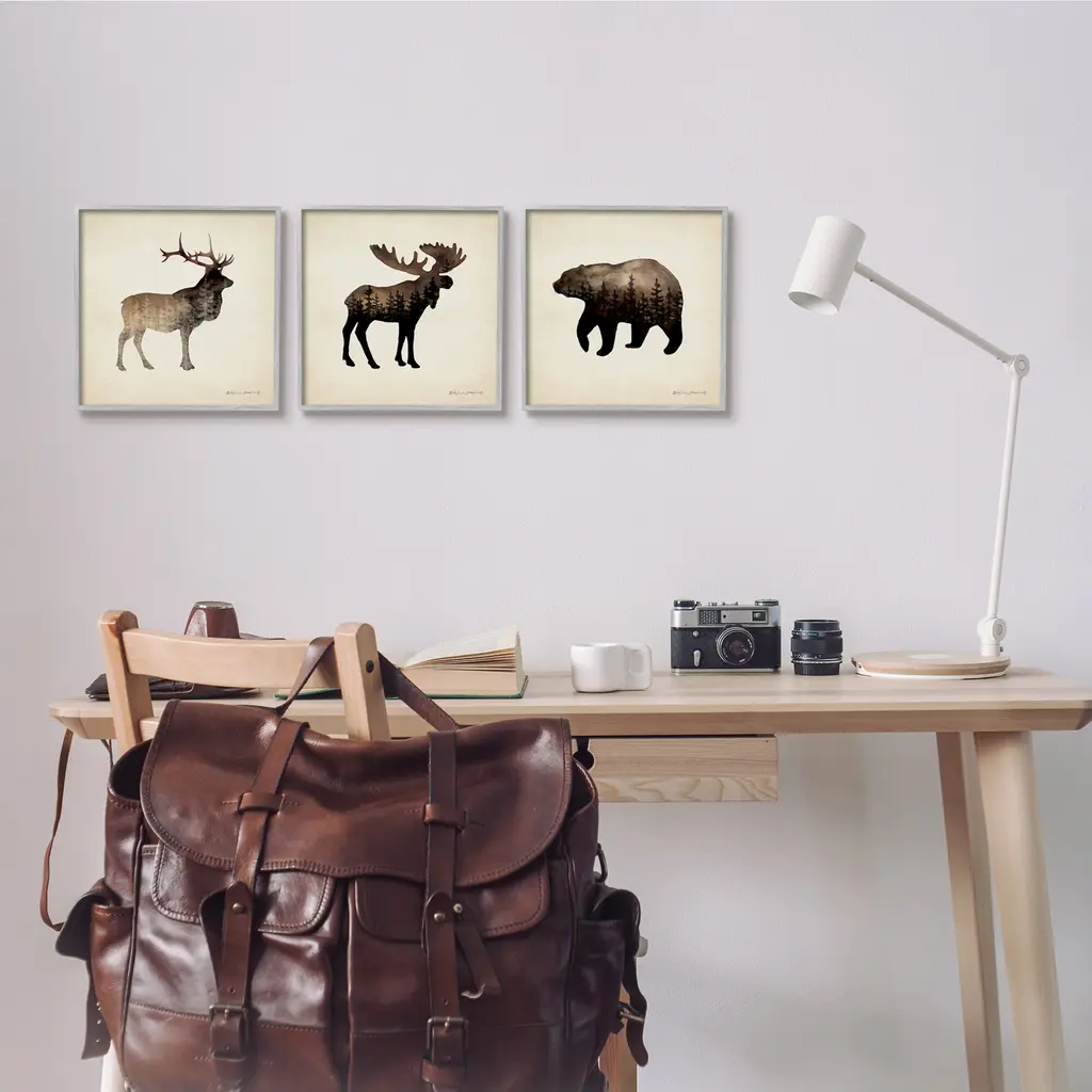 Stupell Woodland Animal Silhouettes Rustic Forest Pine Tree Landscape 3Pc Multi Piece Framed Wall Art Set - Tan - 12 X 12 - Grey