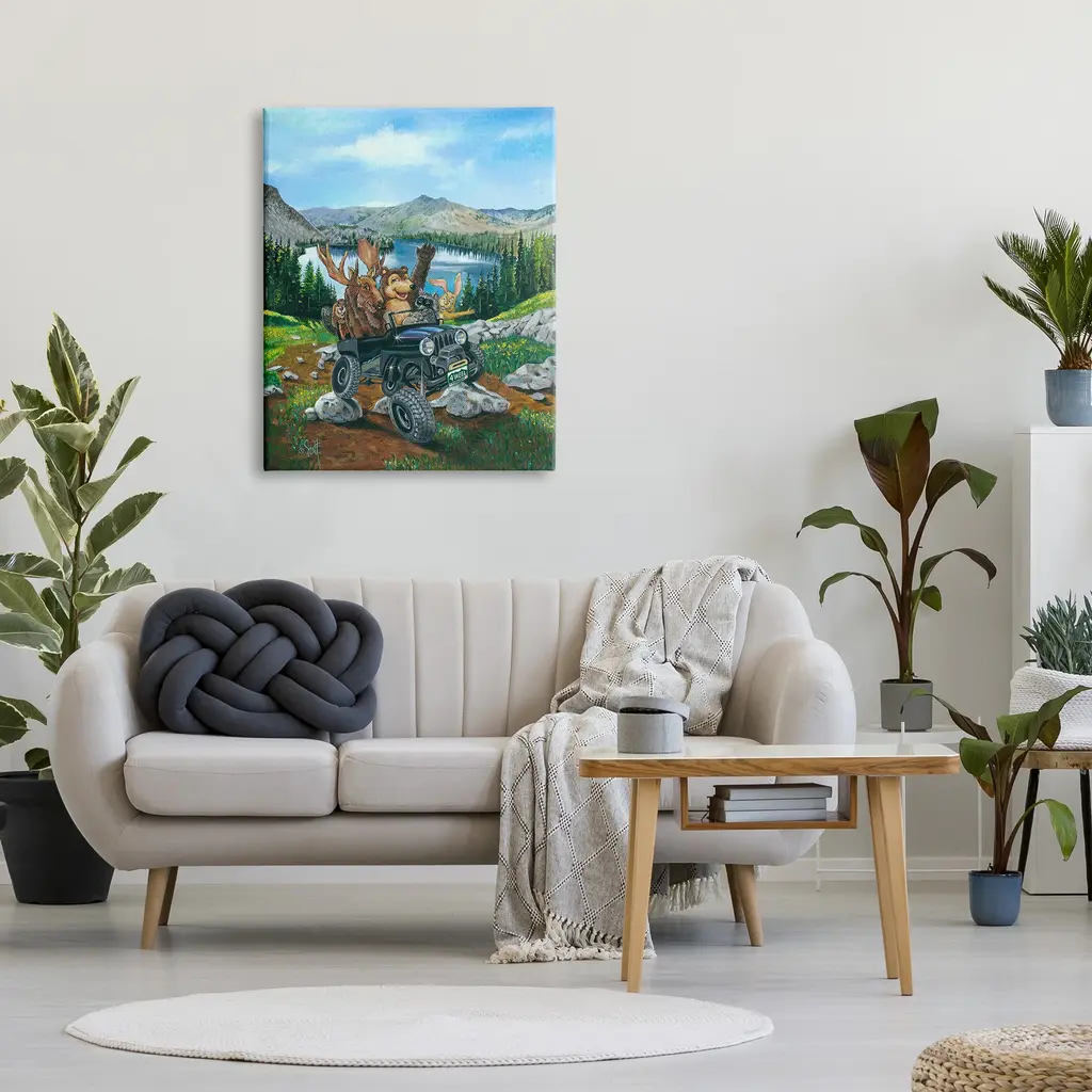 We create our stretched canvas to the highest standards. Using only the highest quality inks and canvas on Mimaki printers, we hand-cut and stretch each piece over a 1.5-inch thick wooden frame for hanging. As a result, the art comes ready to hang on the sturdy ledge with no installation required. Stupell Wall Art is made in the USA.Features: Dimensions: 16 x 1.5 x 20 InchesStretched Canvas Sizes Include Standard: 16 x 1.5 x 20 Large: 20 x 1.5 x 30 X-Large: 30 x 1.5 x 40 Oversized: 36 x 1.5 x 48Wall Art is Ready to Hang with Hardware Free Hanging. No installation required. For Easy Set Up Lean or Layer Artwork on Shelf or Against Wall.Our stretched canvas is created with the highest standards. We use only the highest quality inks and canvas on our in house Mimaki printers, and then hand cut and stretch each piece over a 1.5 inch thick wooden frame for hanging. Made In USA.Artwork Relates To: Nature, Tree, Woodland, Vehicle, Animal, Bear, Mammal, Adventure, Mountain, LakeDesign by Scott Westmoreland