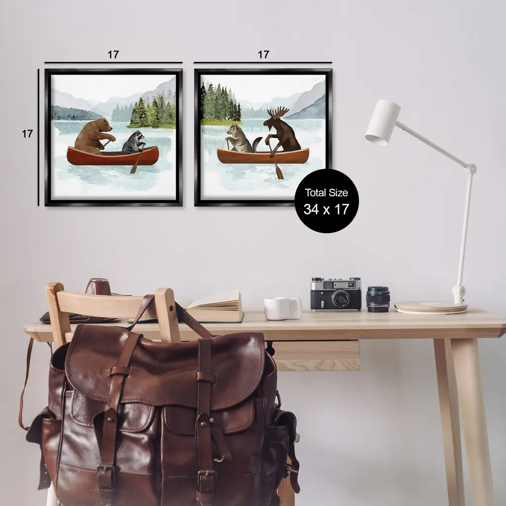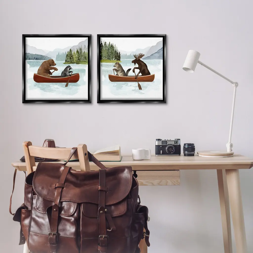 Elevate your home or office to the next level with Stupell Framed Floating Canvas Wall Art. Our premium hand-stretched canvas is mounted securely into a sturdy lightweight frame. The museum-style gap between the wrapped canvas and the box frame gives the illusion of floating artwork. Stupell Wall Art is made in the USA.Features: Dimensions: 2 Piece Set, Each Frame is 18 x 1.7 x 18Two Piece Floating Frame Canvas Products are available as 18"x18" or 25"x25" Panels. All Floating Frame Canvas Products have a 1.7" Depth.Wall Art is Ready to Hang with Hardware Free Hanging. No Installation required. For Easy Set Up Lean or Layer Artwork on Shelf or Against Wall. Artwork is Permently Fixed into the Frame.Our elevated 1.7" Thick Floating Frame is the perfect complement to our canvas style Wall Art. We use only the highest quality inks in house with industry leading printing solutions. Canvas is hand stretched over a durable wood foundation and then mounted securly into a Modern Box Frame. Made in the USA.Artwork Relates To: Boat, Canoe, Canoeing, Animal, Bear, Mammal, Wildlife, LakeDesign by Victoria Barnes