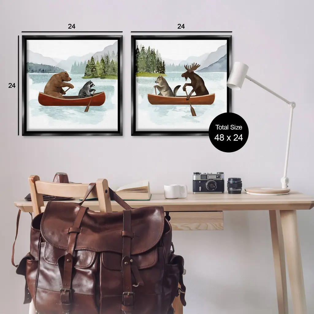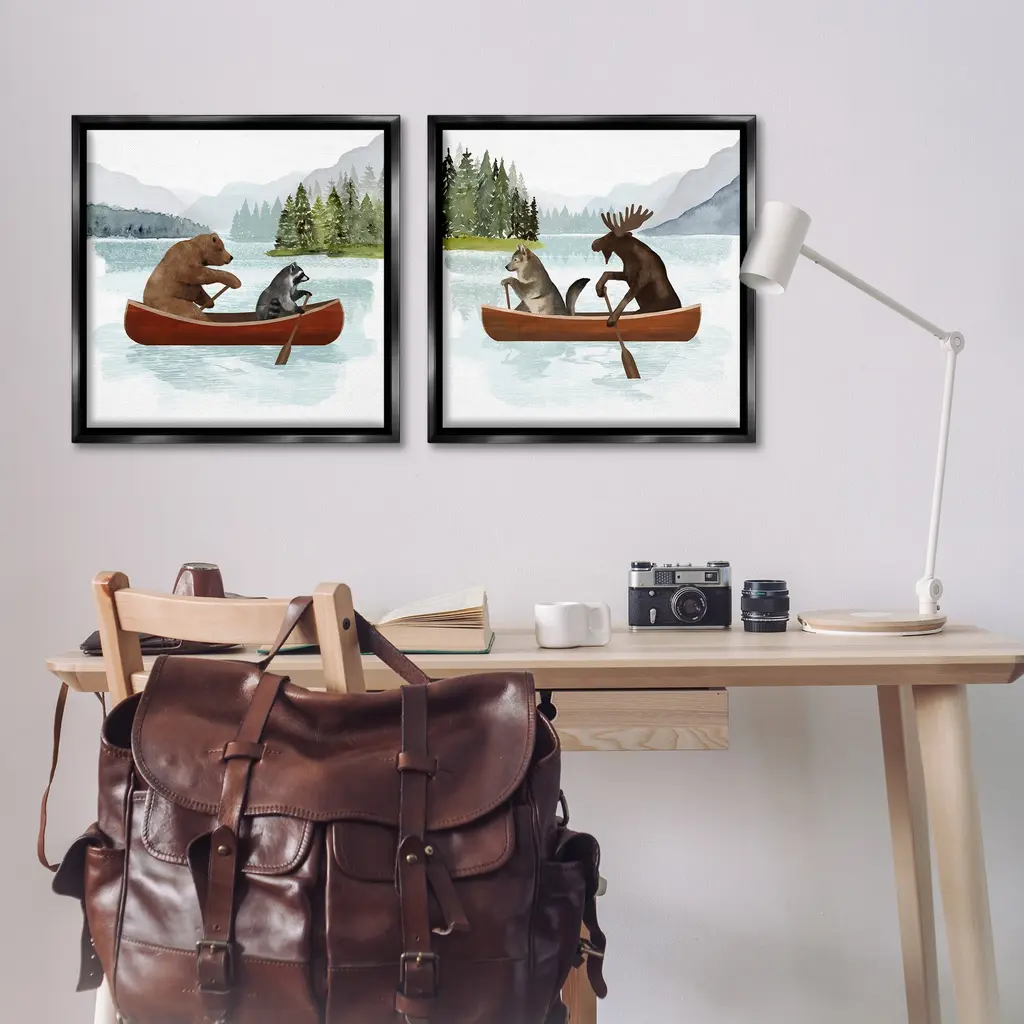 Elevate your home or office to the next level with Stupell Framed Floating Canvas Wall Art. Our premium hand-stretched canvas is mounted securely into a sturdy lightweight frame. The museum-style gap between the wrapped canvas and the box frame gives the illusion of floating artwork. Stupell Wall Art is made in the USA.Features: Dimensions: 2 Piece Set, Each Frame is 18 x 1.7 x 18Two Piece Floating Frame Canvas Products are available as 18"x18" or 25"x25" Panels. All Floating Frame Canvas Products have a 1.7" Depth.Wall Art is Ready to Hang with Hardware Free Hanging. No Installation required. For Easy Set Up Lean or Layer Artwork on Shelf or Against Wall. Artwork is Permently Fixed into the Frame.Our elevated 1.7" Thick Floating Frame is the perfect complement to our canvas style Wall Art. We use only the highest quality inks in house with industry leading printing solutions. Canvas is hand stretched over a durable wood foundation and then mounted securly into a Modern Box Frame. Made in the USA.Artwork Relates To: Boat, Canoe, Canoeing, Animal, Bear, Mammal, Wildlife, LakeDesign by Victoria Barnes