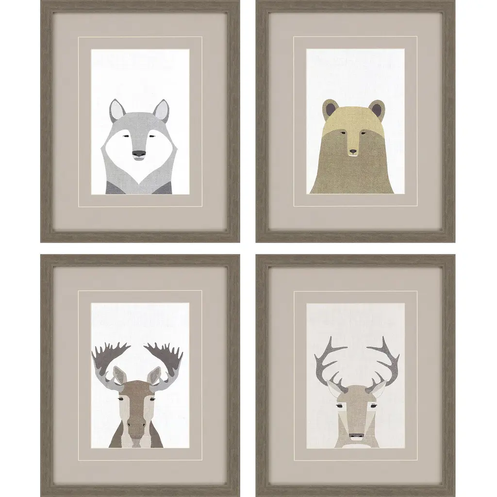 Stupell Woodland Animals Portrait Grey Drawing Design 4Pc Multi Piece Framed Wall Art Set - 16 X 20 - Grey