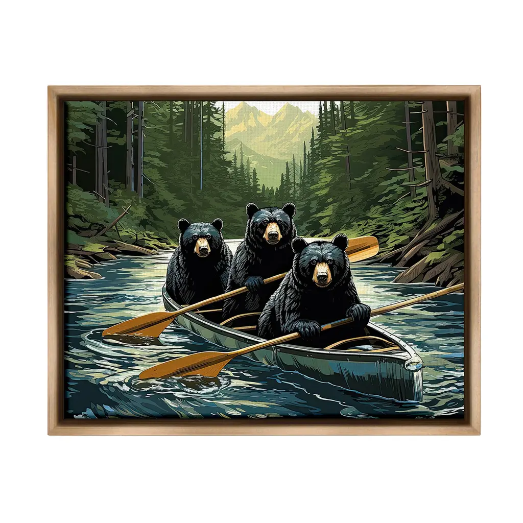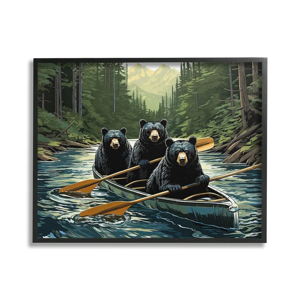 Stupell Woodland Canoeing Bears Framed Giclee Art Design By Jim Baldwin - 30 X 24 - Black