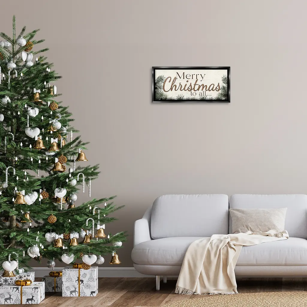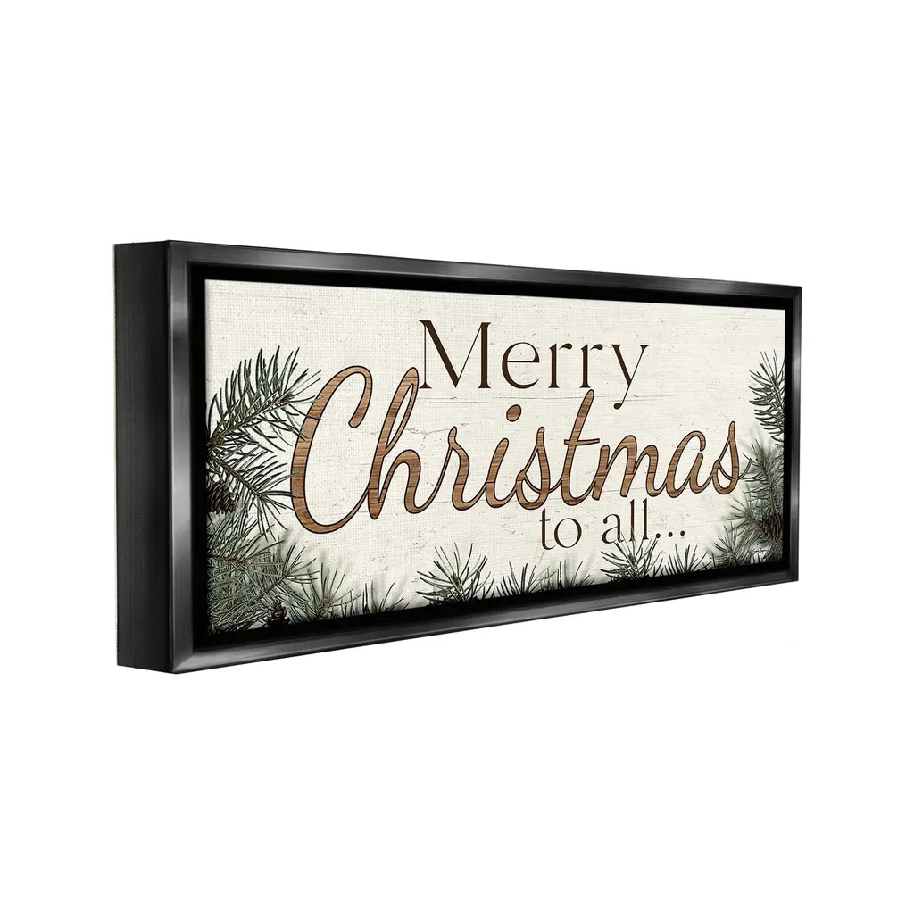 Elevate your home or office to the next level with Stupell Framed Floating Canvas Wall Art. Our premium hand-stretched canvas is mounted securely into a sturdy lightweight frame. The museum-style gap between the wrapped canvas and the box frame gives the illusion of floating artwork. Stupell Wall Art is made in the USA.Features: Dimensions: 25 x 1.7 x 11 Frame, 24 x 1.5 x 10 Canvas ArtFloating Frame Canvas Products are available in sizes 25"x11" and 31"x14". All Floating Frame Canvas Products have a 1.7" Depth.Wall Art is Ready to Hang with Hardware Free Hanging. No Installation required. For Easy Set Up Lean or Layer Artwork on Shelf or Against Wall. Artwork is Permently Fixed into the Frame.Our elevated 1.7" Thick Floating Frame is the perfect complement to our canvas style Wall Art. We use only the highest quality inks in house with industry leading printing solutions. Canvas is hand stretched over a durable wood foundation and then mounted securly into a Modern Box Frame. Made in the USA.Artwork Relates To: Winter, Seasonal, Holiday, Christmas, Tree, Fir, Rustic, Country, Cabin, Merry Christmas to AllDesign by Susie Boyer