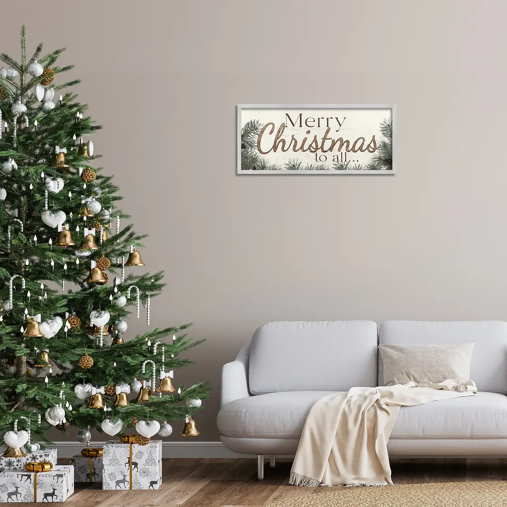 Add dimension to any room with our textured Framed Giclee Artwork. Our framed artwork is securely mounted into a 1.5-inch thick wood grain frame and ready to hang. Frames are available in three alluring styles: black, gray farmhouse and white. In addition, you should check out our oversized options if you want a statement piece. Stupell Wall Art is made in the USA.Features: Dimensions: 24 x 1.5 x 10 FramedFramed Giclee Product Sizes include 24"x10" and 30"x13". All Framed Giclee products have a 1.5" Depth.Wall Art is Ready to Hang with Hardware Free Hanging. No installation required. For Easy Set Up Lean or Layer Artwork on Shelf or Against Wall.Our giclée prints are carefully mounted on a durable MDF backing, and then perfectly finished in a 1.5 inch thick woodgrain frame. Mounted frame colors include black, gray farmhouse and white. Made In USA.Artwork Relates To: Winter, Seasonal, Holiday, Christmas, Tree, Fir, Rustic, Country, Cabin, Merry Christmas to AllDesign by Susie Boyer