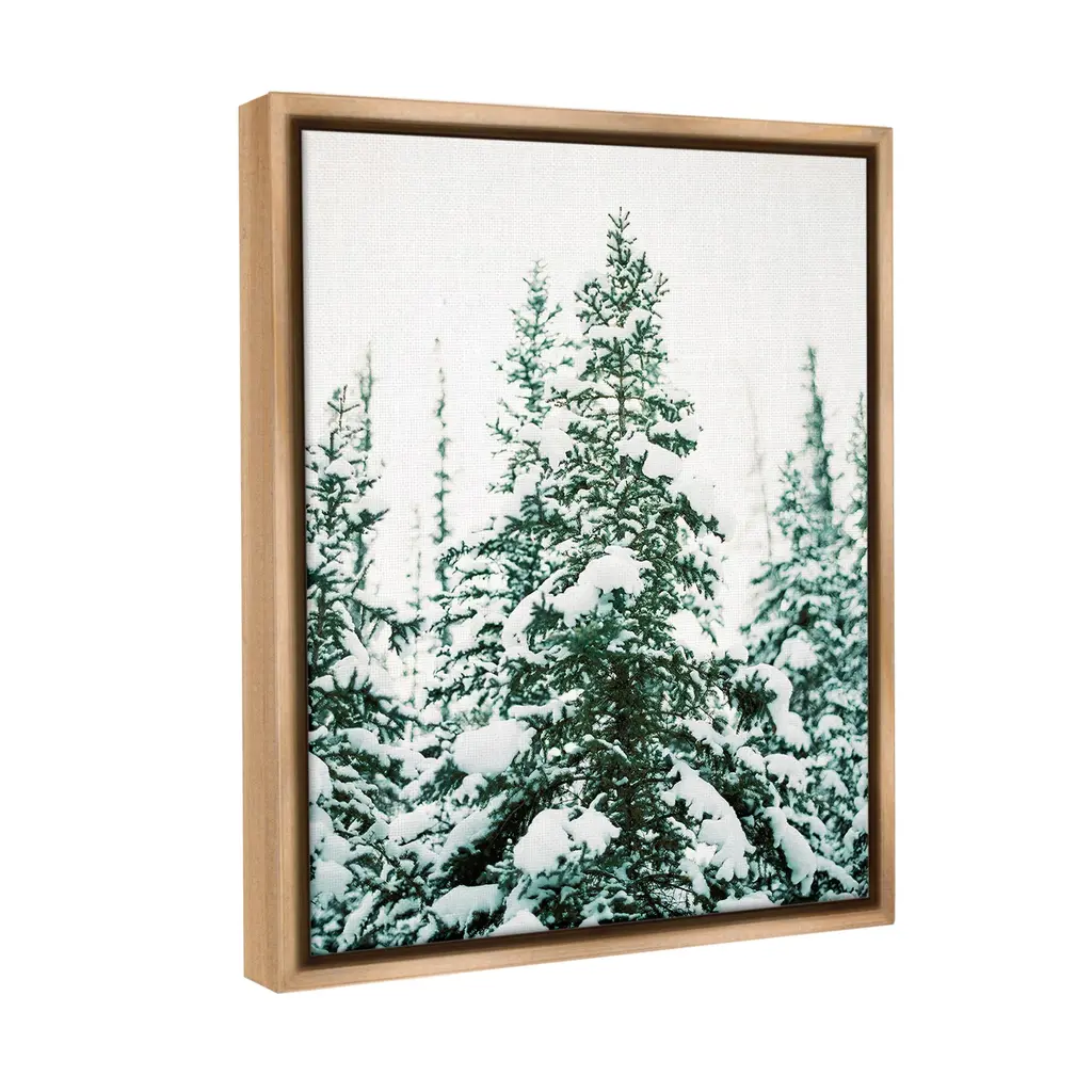 Elevate your home or office to the next level with Stupell Framed Floating Canvas Wall Art. Our premium hand-stretched canvas is mounted securely into a sturdy lightweight frame. The museum-style gap between the wrapped canvas and the box frame gives the illusion of floating artwork. Stupell Wall Art is made in the USA.Features: Dimensions: 17 x 1.7 x 21 Frame, 16 x 1.5 x 20 Canvas ArtFloating Frame Canvas Products are available in sizes 17"x21" and 25"x31". All Floating Frame Canvas Products have a 1.7" Depth.Wall Art is Ready to Hang with Hardware Free Hanging. No Installation required. For Easy Set Up Lean or Layer Artwork on Shelf or Against Wall. Artwork is Permently Fixed into the Frame.Our elevated 1.7" Thick Floating Frame is the perfect complement to our canvas style Wall Art. We use only the highest quality inks in house with industry leading printing solutions. Canvas is hand stretched over a durable wood foundation and then mounted securly into a Modern Box Frame. Made in the USA.Artwork Relates To: Plant, Tree, Ice, Nature, Fir, Frost, Snow, Conifer, Pine, Vegetation, Woodland, Snow, WinterDesign by Justine Milton