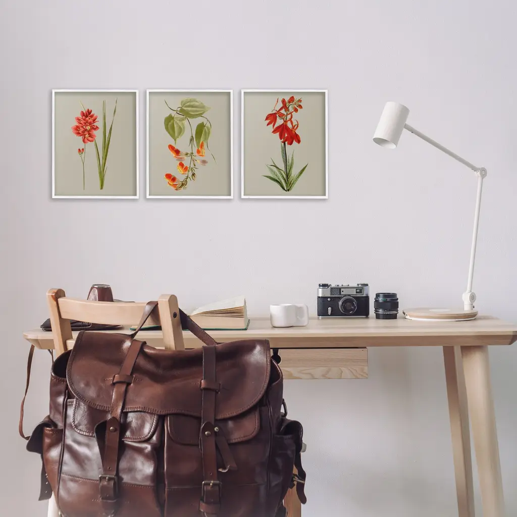 Fill any space in your home or office with our Framed Wall Art Sets. Our framed artwork is securely mounted into a 1.5-inch thick wood grain frame and ready to hang. Frames are available in three alluring styles: black, gray farmhouse and white. Stupell Wall Art is made in the USA.Features: Dimensions: 3 Piece Set, Each Panel is 11 x 1.5 x 14 FramedThree Piece Framed Giclee Sets are availabel as 11"x14", 16"x20", or 24"x30" Panels. All Framed Giclee Products have a 1.5" Depth.Wall Art is Ready to Hang with Hardware Free Hanging. No installation required. For Easy Set Up Lean or Layer Artwork on Shelf or Against Wall.Curated Wall Art Sets make it easy for you complete the theme for any room. Our giclée prints are carefully mounted on a durable MDF backing, and then perfectly finished in a 1.5 inch thick woodgrain frame. Mounted frame colors include black, gray farmhouse and white. Made In USA.Artwork Relates To: Flower, Plant, Anther, Floral, Petal, Botanical, Leaf, Vintage, StudyDesign by Vision Studio