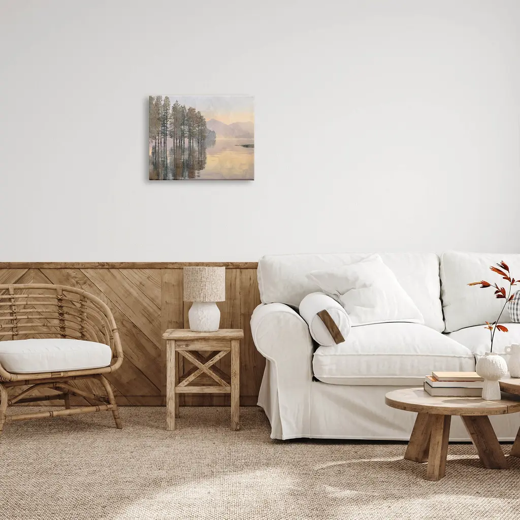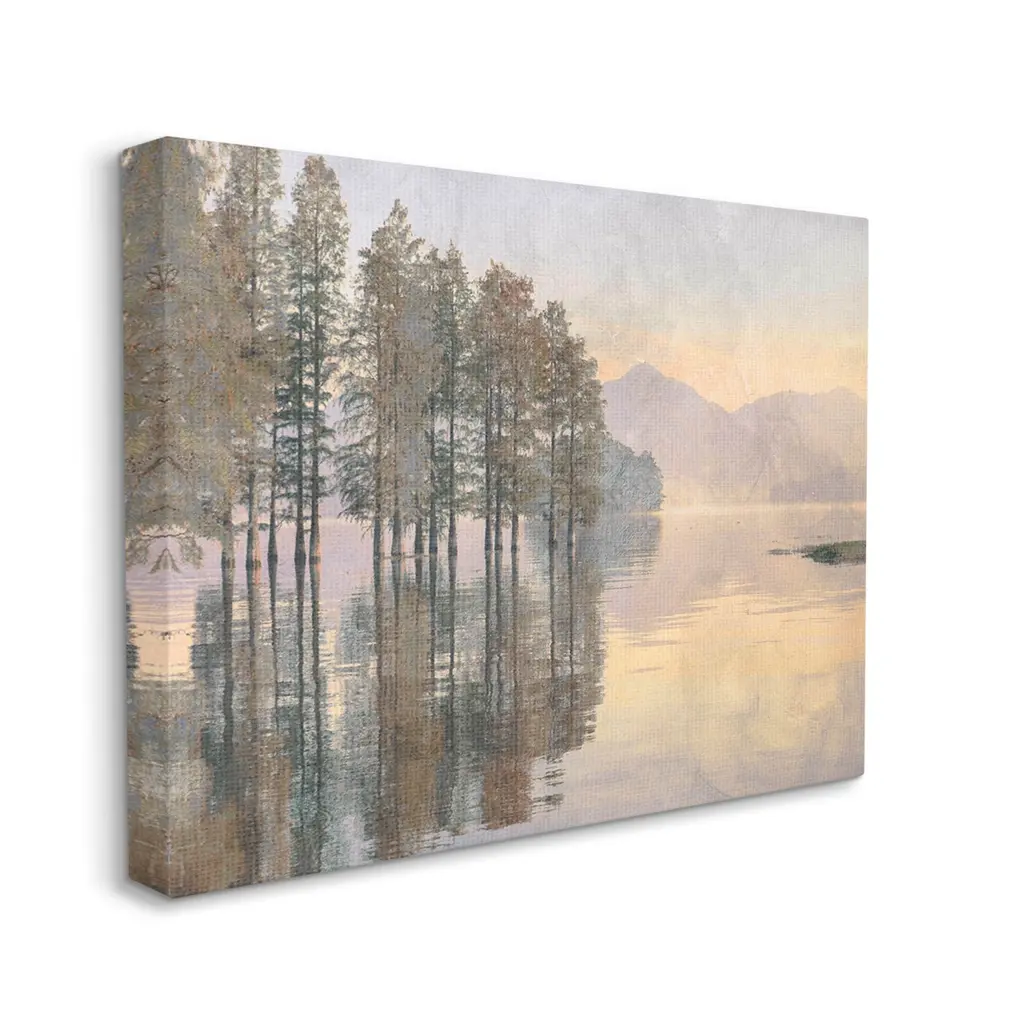 Proudly made in the USA, Our stretched canvas is created with the highest standards. We use only the highest quality inks and canvas on our in house Mimaki printers, and then hand cut and stretch each piece over a 1.5 inch thick wooden frame for hanging. The art comes ready to hang with no installation required.Features: Dimensions: 20 x 1.5 x 16 InchesStretched Canvas Sizes Include Standard: 20 x 1.5 x 16 Large: 30 x 1.5 x 20 X-Large: 40 x 1.5 x 30 Oversized: 48 x 1.5 x 36Wall Art is Ready to Hang - No Installation or Hardware Needed. For Easy Set Up Lean or Layer Artwork on Shelf or Against Wall.Our stretched canvas is created with the highest standards. We use only the highest quality inks and canvas on our in house Mimaki printers, and then hand cut and stretch each piece over a 1.5 inch thick wooden frame for hanging. Made In USA.Artwork Relates To: Painting, Water, Outdoors, Tree, Plant, Nature, Scenery, Land, Vegetation, Landscape, Weather, Woodland, LakeDesign by Lil' Rue