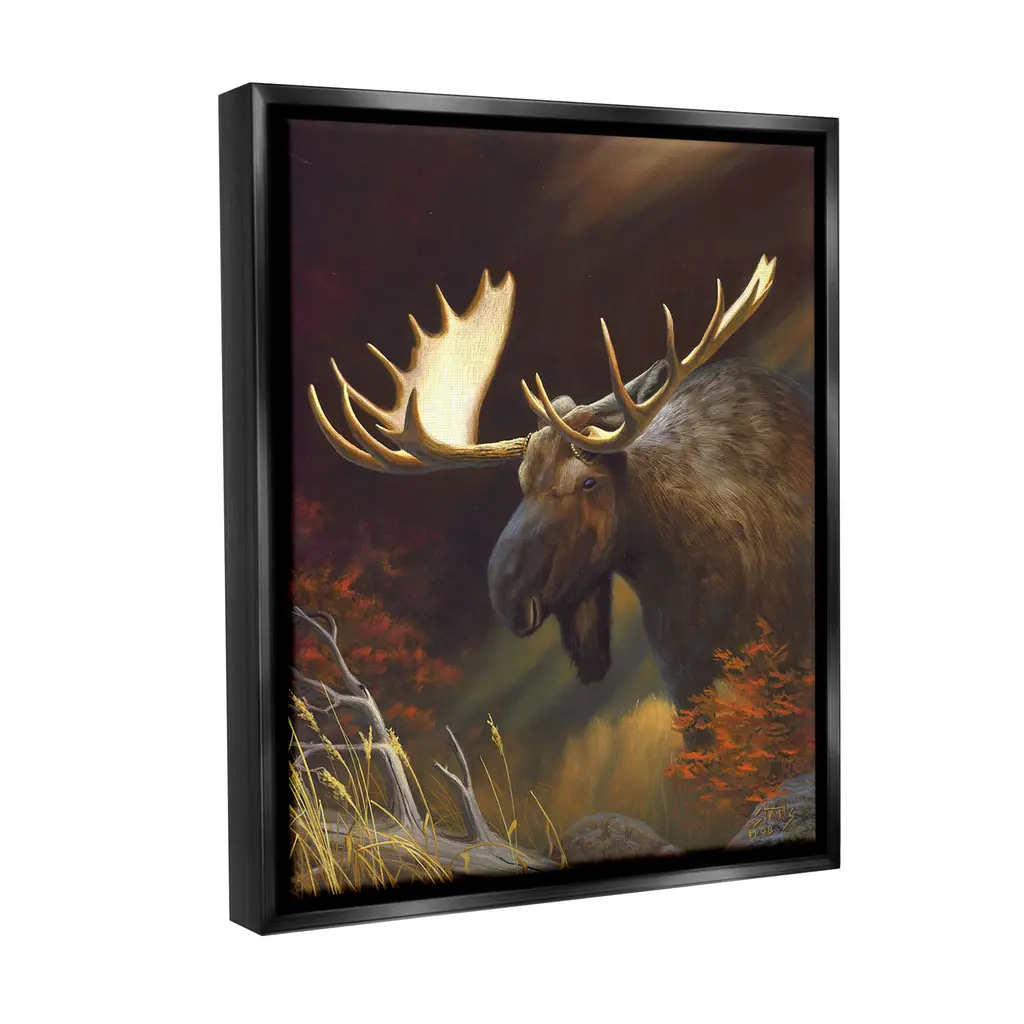 Elevate your home or office to the next level with Stupell Framed Floating Canvas Wall Art. Our premium hand-stretched canvas is mounted securely into a sturdy lightweight frame. The museum-style gap between the wrapped canvas and the box frame gives the illusion of floating artwork. Stupell Wall Art is made in the USA.Features: Dimensions: 17 x 1.7 x 21 Frame, 16 x 1.5 x 20 Canvas ArtFloating Frame Canvas Products are available in sizes 17"x21" and 25"x31". All Floating Frame Canvas Products have a 1.7" Depth.Wall Art is Ready to Hang with Hardware Free Hanging. No Installation required. For Easy Set Up Lean or Layer Artwork on Shelf or Against Wall. Artwork is Permently Fixed into the Frame.Our elevated 1.7" Thick Floating Frame is the perfect complement to our canvas style Wall Art. We use only the highest quality inks in house with industry leading printing solutions. Canvas is hand stretched over a durable wood foundation and then mounted securly into a Modern Box Frame. Made in the USA.Artwork Relates To: Animal, Mammal, Moose, Wildlife, Nature, Woodland, ForestDesign by Leo Stans