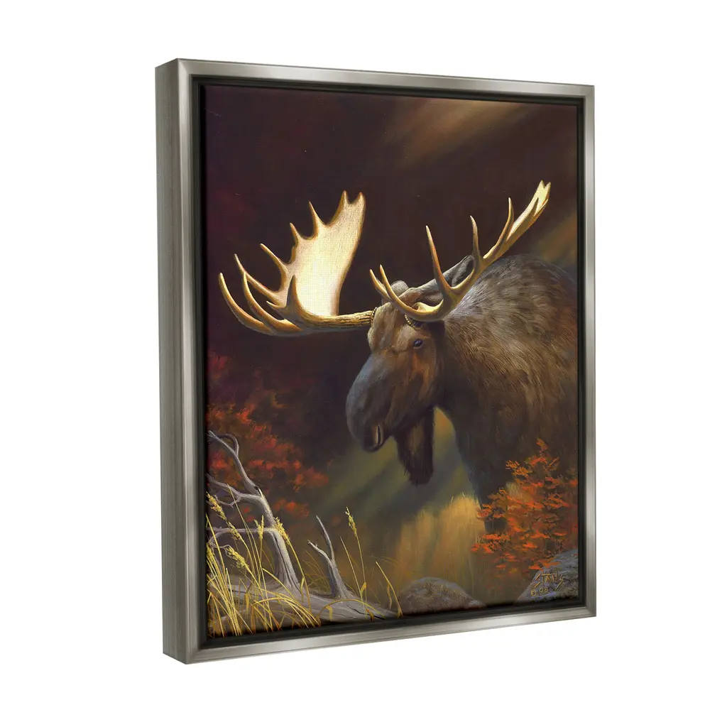 Elevate your home or office to the next level with Stupell Framed Floating Canvas Wall Art. Our premium hand-stretched canvas is mounted securely into a sturdy lightweight frame. The museum-style gap between the wrapped canvas and the box frame gives the illusion of floating artwork. Stupell Wall Art is made in the USA.Features: Dimensions: 17 x 1.7 x 21 Frame, 16 x 1.5 x 20 Canvas ArtFloating Frame Canvas Products are available in sizes 17"x21" and 25"x31". All Floating Frame Canvas Products have a 1.7" Depth.Wall Art is Ready to Hang with Hardware Free Hanging. No Installation required. For Easy Set Up Lean or Layer Artwork on Shelf or Against Wall. Artwork is Permently Fixed into the Frame.Our elevated 1.7" Thick Floating Frame is the perfect complement to our canvas style Wall Art. We use only the highest quality inks in house with industry leading printing solutions. Canvas is hand stretched over a durable wood foundation and then mounted securly into a Modern Box Frame. Made in the USA.Artwork Relates To: Animal, Mammal, Moose, Wildlife, Nature, Woodland, ForestDesign by Leo Stans
