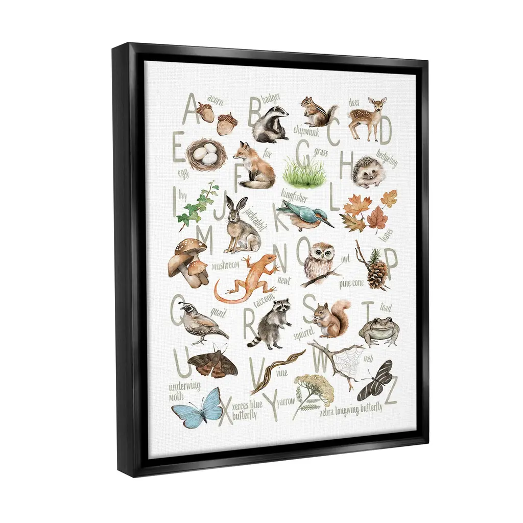 Stupell Woodland Nature Alphabet Framed Floater Canvas Wall Art Design By Ziwei Li - 25 X 31 - Black