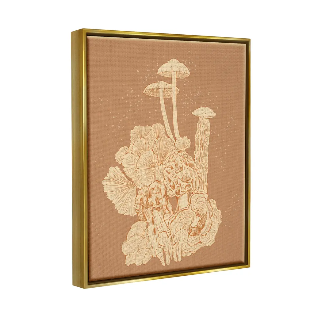 Stupell Woodland Nature Varied Mushrooms Framed Floater Canvas Wall Art By Ziwei Li - 24 X 30 - Gold
