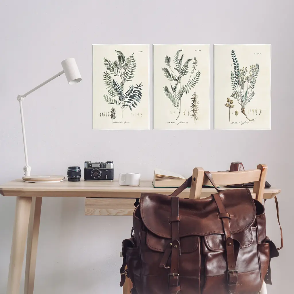 Fill any space with Stupell Wall Art Sets. Our wall plaques start as high-quality lithograph prints mounted on durable 0.5-inch thick MDF wood. Each piece is hand finished and comes with a fresh layer of white foil on the sides to give it a crisp, clean look. Plaques arrive ready to hang without installation and come with removable plastic corners to keep them from damage in transit. Stupell Wall Art is made in the USA.Features: Dimensions: 3 Piece Set, Each Panel is 10 x 0.5 x 15 InchesThree Piece Wall Plaque Sets are available as 10"x15" or 13"x19" Panels. All Wall Plaque Panels have a 0.5" Depth.Wall Art is Ready to Hang with Hardware Free Hanging. No installation required. For Easy Set Up Lean or Layer Artwork on Shelf or Against Wall.All of our wall plaques start off as high quality lithograph prints that are then mounted on durable 0.5 inch thick MDF wood. Each piece is hand finished and comes with a fresh layer of foil on the sides to give it a crisp clean look. Made In USA.Artwork Relates To: Flower, Plant, Anther, Floral, Petal, Botanical, Leaf, Vintage, Study, Fern, WoodlandDesign by Martini