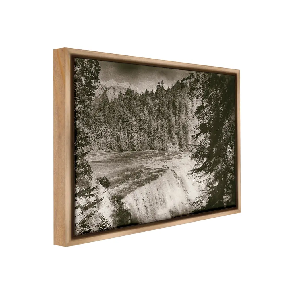 Elevate your home or office to the next level with Stupell Framed Floating Canvas Wall Art. Our premium hand-stretched canvas is mounted securely into a sturdy lightweight frame. The museum-style gap between the wrapped canvas and the box frame gives the illusion of floating artwork. Stupell Wall Art is made in the USA.Features: Dimensions: 21 x 1.7 x 17 Frame, 20 x 1.5 x 16 Canvas ArtFloating Frame Canvas Products are available in sizes 21"x17" and 31"x25". All Floating Frame Canvas Products have a 1.7" Depth.Wall Art is Ready to Hang with Hardware Free Hanging. No Installation required. For Easy Set Up Lean or Layer Artwork on Shelf or Against Wall. Artwork is Permently Fixed into the Frame.Our elevated 1.7" Thick Floating Frame is the perfect complement to our canvas style Wall Art. We use only the highest quality inks in house with industry leading printing solutions. Canvas is hand stretched over a durable wood foundation and then mounted securly into a Modern Box Frame. Made in the USA.Artwork Relates To: Plant, Tree, Vegetation, Nature, Conifer, Woodland, Water, Scenery, Wilderness, Waterfall, Pine, Landscape, Creek, StreamDesign by Nathan Larson