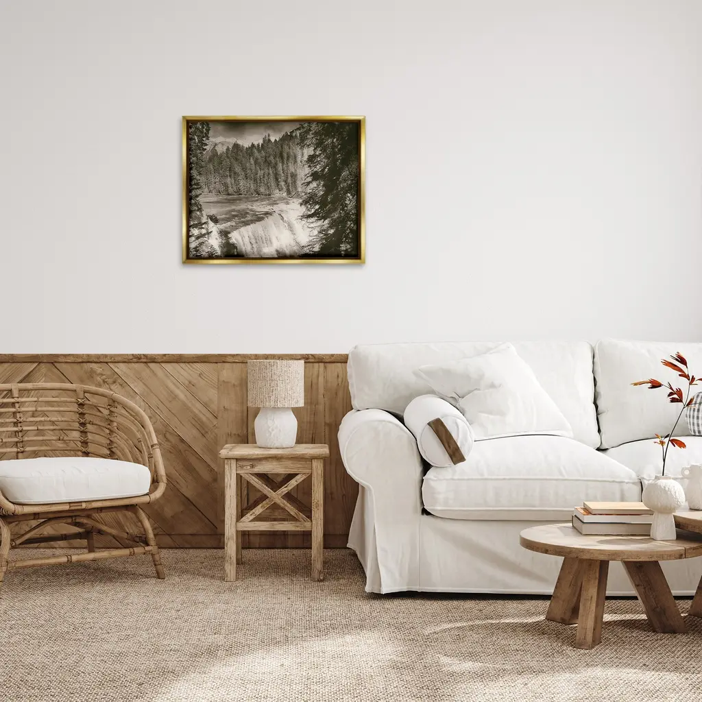 Elevate your home or office to the next level with Stupell Framed Floating Canvas Wall Art. Our premium hand-stretched canvas is mounted securely into a sturdy lightweight frame. The museum-style gap between the wrapped canvas and the box frame gives the illusion of floating artwork. Stupell Wall Art is made in the USA.Features: Dimensions: 21 x 1.7 x 17 Frame, 20 x 1.5 x 16 Canvas ArtFloating Frame Canvas Products are available in sizes 21"x17" and 31"x25". All Floating Frame Canvas Products have a 1.7" Depth.Wall Art is Ready to Hang with Hardware Free Hanging. No Installation required. For Easy Set Up Lean or Layer Artwork on Shelf or Against Wall. Artwork is Permently Fixed into the Frame.Our elevated 1.7" Thick Floating Frame is the perfect complement to our canvas style Wall Art. We use only the highest quality inks in house with industry leading printing solutions. Canvas is hand stretched over a durable wood foundation and then mounted securly into a Modern Box Frame. Made in the USA.Artwork Relates To: Plant, Tree, Vegetation, Nature, Conifer, Woodland, Water, Scenery, Wilderness, Waterfall, Pine, Landscape, Creek, StreamDesign by Nathan Larson