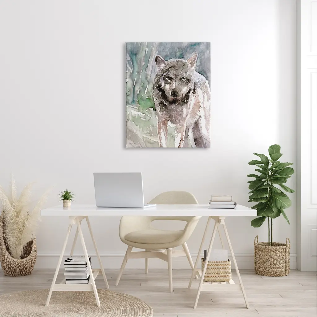 Proudly made in the USA, Our stretched canvas is created with the highest standards. We use only the highest quality inks and canvas on our in house Mimaki printers, and then hand cut and stretch each piece over a 1.5 inch thick wooden frame for hanging. The art comes ready to hang with no installation required.Features: Wall Art is Ready to Hang - No Installation or Hardware Needed. For Easy Set Up Lean or Layer Artwork on Shelf or Against Wall.Our stretched canvas is created with the highest standards. We use only the highest quality inks and canvas on our in house Mimaki printers, and then hand cut and stretch each piece over a 1.5 inch thick wooden frame for hanging. Made In USA.Artwork Relates To: Dog; Canine; Pet; Mammal; Animal; Wolf; Coyote; Design by Stellar Design Studio