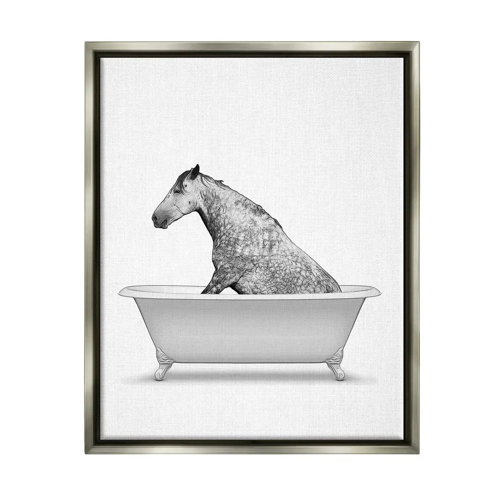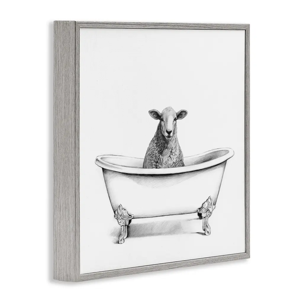 Stupell Wooly Sheep In Bath Tub Farm Animal Bathroom Framed Wall Art,12x12 - White - 12 X 12 - Wood - Grey
