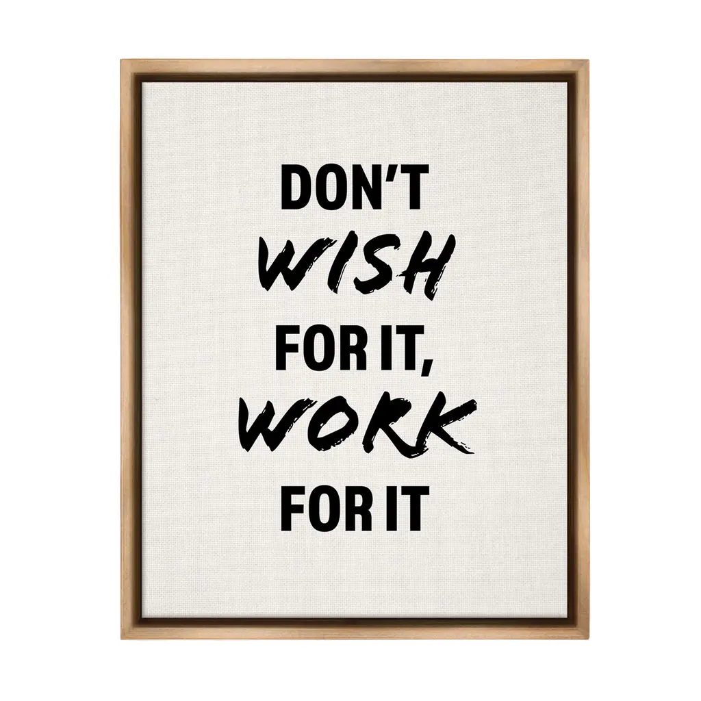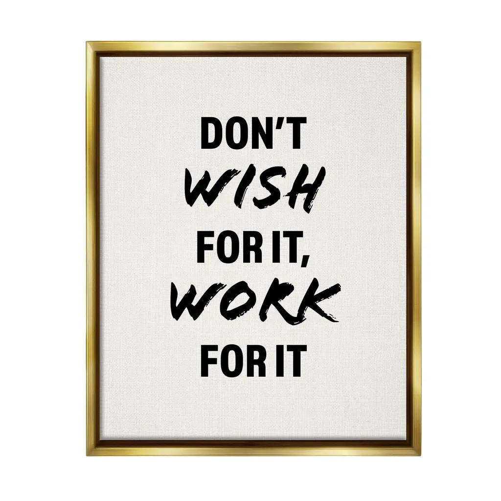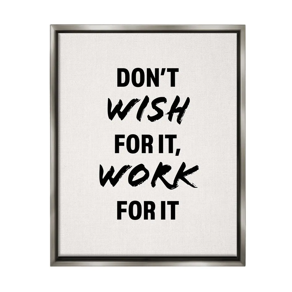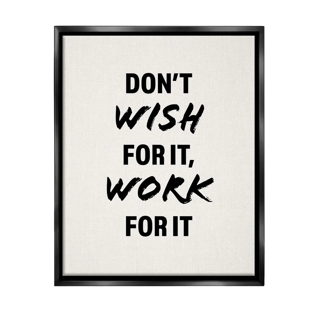 Add dimension to any room with our textured Framed Giclee Artwork. Our framed artwork is securely mounted into a 1.5-inch thick wood grain frame and ready to hang. Frames are available in three alluring styles: black, gray farmhouse and white. In addition, you should check out our oversized options if you want a statement piece. Stupell Wall Art is made in the USA.Features: Dimensions: 11 x 1.5 x 14 FramedFramed Giclee Products are available in the sizes 11"x14", 16"x20" or 24"x30". All Framed Giclee Products have a 1.5" Depth. Wall Art is Ready to Hang with Hardware Free Hanging. No installation required. For Easy Set Up Lean or Layer Artwork on Shelf or Against Wall.Our giclée prints are carefully mounted on a durable MDF backing, and then perfectly finished in a 1.5 inch thick woodgrain frame. Mounted frame colors include black, gray farmhouse and white. Made In USA.Artwork Relates To: Inspirational, Motivational, Minimal, Don't Wish For It Work For itDesign by Victoria Barnes
