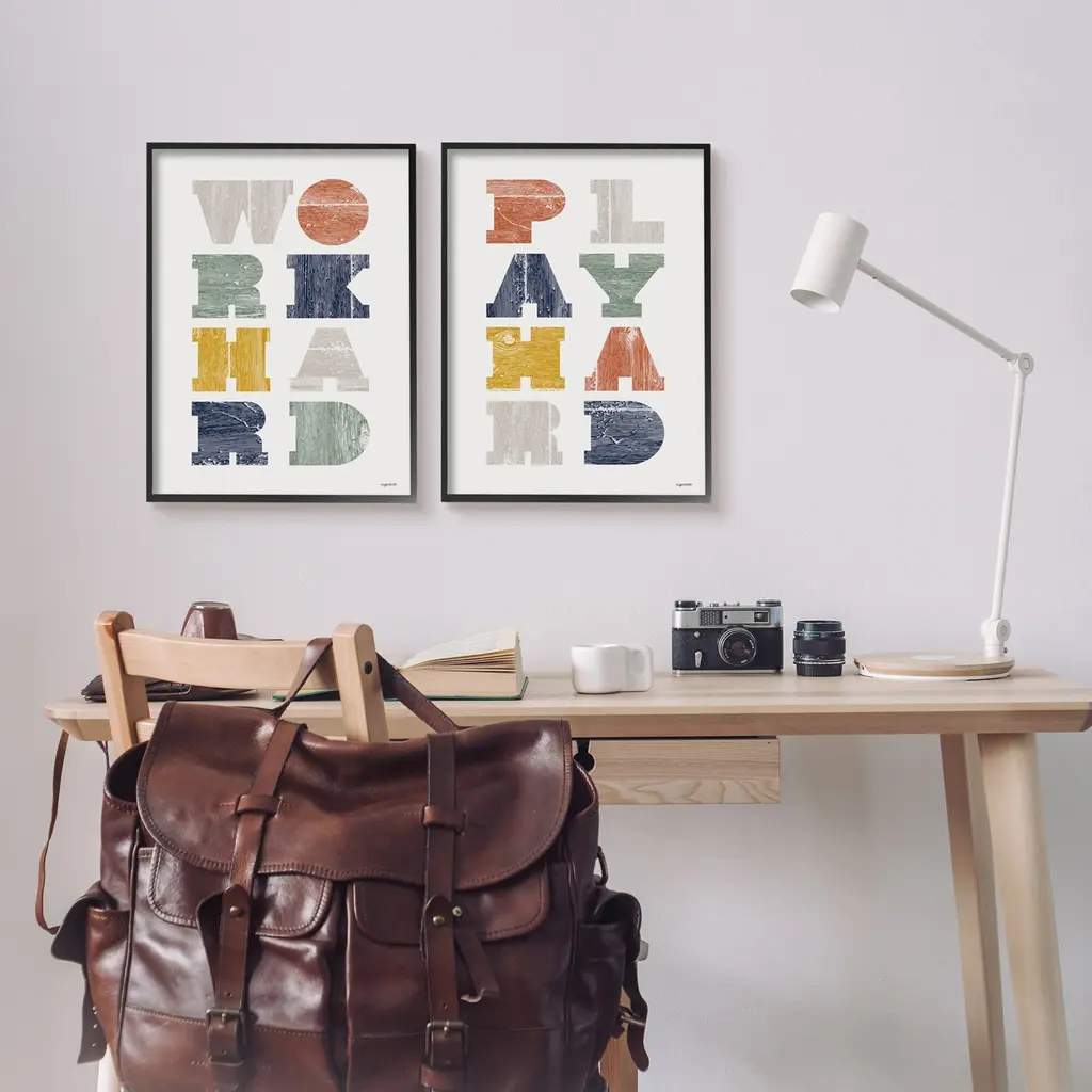 Stupell Work Hard Play Hard Phrase Children's Block Typography 2Pc Multi Piece Framed Wall Art Set - Multi-Color - 16 X 20 - Black