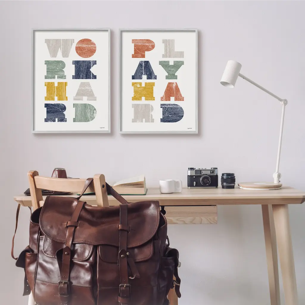 Stupell Work Hard Play Hard Phrase Children's Block Typography 2Pc Multi Piece Framed Wall Art Set - Multi-Color - 16 X 20 - Grey