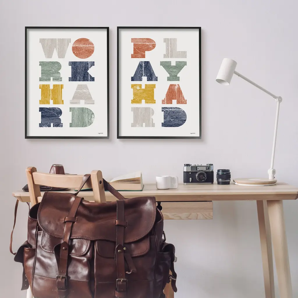 Stupell Work Hard Play Hard Phrase Children's Block Typography 2Pc Multi Piece Framed Wall Art Set - Multi-Color - 24 X 30 - Black