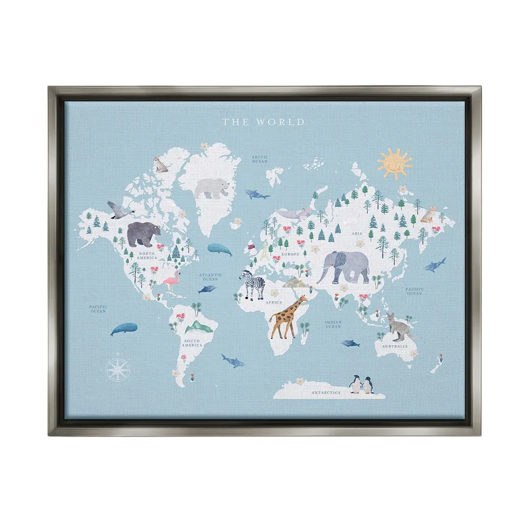 Add dimension to any room with our textured Framed Giclee Artwork. Our framed artwork is securely mounted into a 1.5-inch thick wood grain frame and ready to hang. Frames are available in three alluring styles: black, gray farmhouse and white. In addition, you should check out our oversized options if you want a statement piece. Stupell Wall Art is made in the USA.Features: Dimensions: 14 x 1.5 x 11 FramedFramed Giclee Products are available in the sizes 14"x11", 20"x16" or 30"x24". All Framed Giclee Products have a 1.5" Depth. Wall Art is Ready to Hang with Hardware Free Hanging. No installation required. For Easy Set Up Lean or Layer Artwork on Shelf or Against Wall.Our giclée prints are carefully mounted on a durable MDF backing, and then perfectly finished in a 1.5 inch thick woodgrain frame. Mounted frame colors include black, gray farmhouse and white. Made In USA.Artwork Relates To: Animal, Bear, Mammal, Wildlife, Map, Diagram, Educational, World Map, Elephant, PenguinDesign by Leah Straatsma