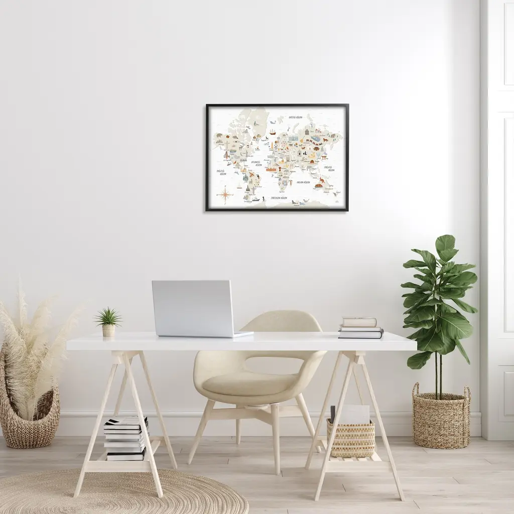 Stupell World Map Of Destination Illustrations Soft Brown Tones Framed Wall Art - 30 X 24 - Black