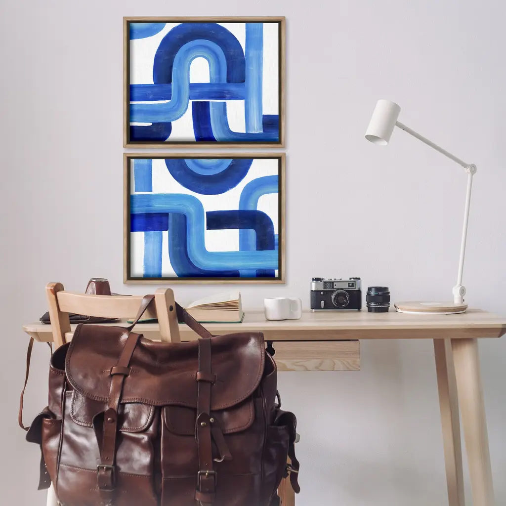 Elevate your home or office to the next level with Stupell Framed Floating Canvas Wall Art. Our premium hand-stretched canvas is mounted securely into a sturdy lightweight frame. The museum-style gap between the wrapped canvas and the box frame gives the illusion of floating artwork. Stupell Wall Art is made in the USA.Features: Dimensions: 2 Piece Set, Each Frame is 17 x 1.7 x 21Two Piece Floater Framed Canvas are available as 21"x17" or 31"x24" Panels. All Floater Frame Products have a 1.7" Depth.Wall Art is Ready to Hang with Hardware Free Hanging. No Installation required. For Easy Set Up Lean or Layer Artwork on Shelf or Against Wall. Artwork is Permently Fixed into the Frame.Our elevated 1.7" Thick Floating Frame is the perfect complement to our canvas style Wall Art. We use only the highest quality inks in house with industry leading printing solutions. Canvas is hand stretched over a durable wood foundation and then mounted securly into a Modern Box Frame. Made in the USA.Artwork Relates To: Abstract, Modern, Contemporary, Geometric, PatternDesign by Grace Popp