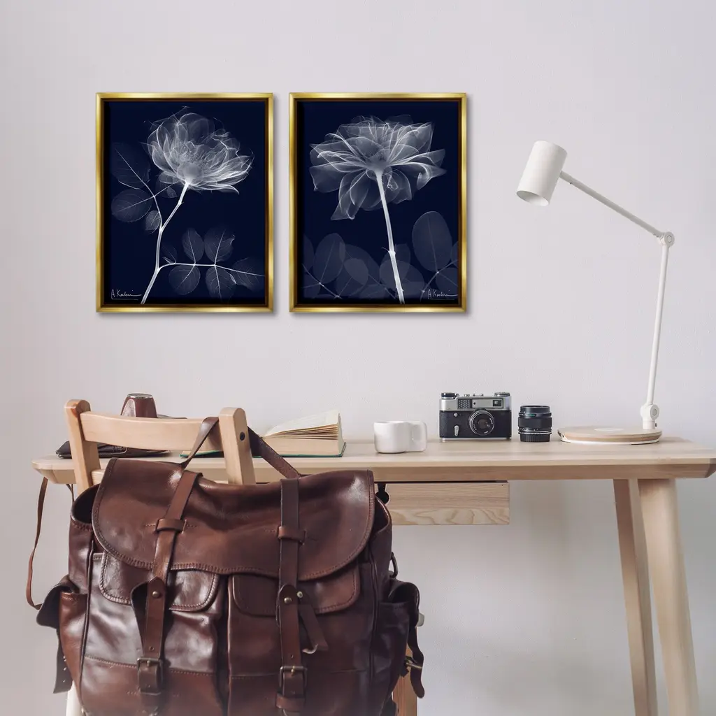 Elevate your home or office to the next level with Stupell Framed Floating Canvas Wall Art. Our premium hand-stretched canvas is mounted securely into a sturdy lightweight frame. The museum-style gap between the wrapped canvas and the box frame gives the illusion of floating artwork. Stupell Wall Art is made in the USA.Features: Dimensions: 2 Piece Set, Each Frame is 17 x 1.7 x 21Two Piece Floater Framed Canvas are available as 17x21 or 25x31 Panels. All Floater Frame Products have a 1.7" Depth.Wall Art is Ready to Hang with Hardware Free Hanging. No Installation required. For Easy Set Up Lean or Layer Artwork on Shelf or Against Wall. Artwork is Permently Fixed into the Frame.Our elevated 1.7" Thick Floating Frame is the perfect complement to our canvas style Wall Art. We use only the highest quality inks in house with industry leading printing solutions. Canvas is hand stretched over a durable wood foundation and then mounted securly into a Modern Box Frame. Made in the USA.Artwork Relates To: Flower, Plant, Abstract, Modern, X-Ray, Blossom, Leaf, NatureDesign by Albert Koetsier