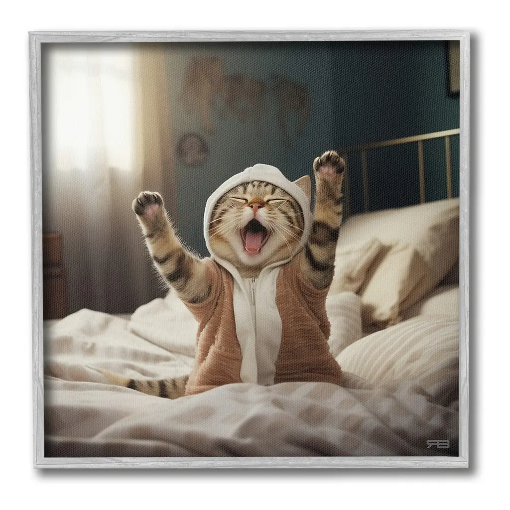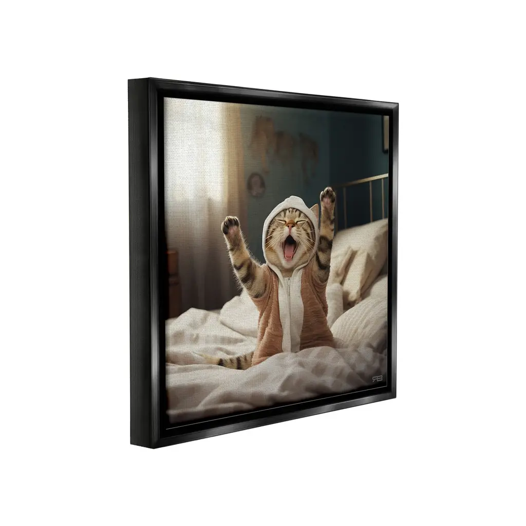 Elevate your home or office to the next level with Stupell Framed Floating Canvas Wall Art. Our premium hand-stretched canvas is mounted securely into a sturdy lightweight frame. The museum-style gap between the wrapped canvas and the box frame gives the illusion of floating artwork. Stupell Wall Art is made in the USA.Features: Dimensions: 18 x 1.7 x 18 Frame, 17 x 1.5 x 17 Canvas ArtFloating Frame Canvas Products are available in sizes 18"x18" and 25"x25". All Floating Frame Canvas Products have a 1.7" Depth.Wall Art is Ready to Hang with Hardware Free Hanging. No Installation required. For Easy Set Up Lean or Layer Artwork on Shelf or Against Wall. Artwork is Permently Fixed into the Frame.Our elevated 1.7" Thick Floating Frame is the perfect complement to our canvas style Wall Art. We use only the highest quality inks in house with industry leading printing solutions. Canvas is hand stretched over a durable wood foundation and then mounted securly into a Modern Box Frame. Made in the USA.Artwork Relates To: Animal, Cat, Mammal, Pet, Yawning, Cozy, Bedroom, Pillow, BedDesign by RB