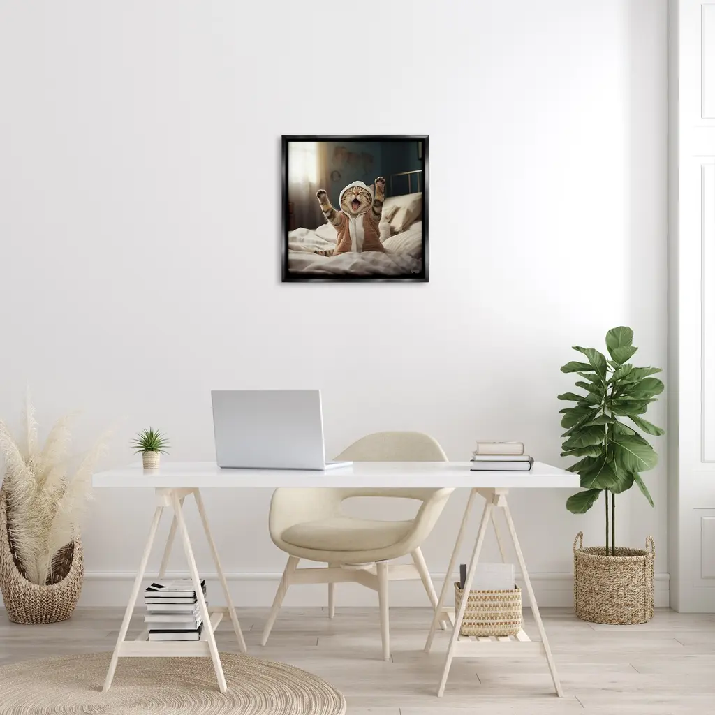 Elevate your home or office to the next level with Stupell Framed Floating Canvas Wall Art. Our premium hand-stretched canvas is mounted securely into a sturdy lightweight frame. The museum-style gap between the wrapped canvas and the box frame gives the illusion of floating artwork. Stupell Wall Art is made in the USA.Features: Dimensions: 18 x 1.7 x 18 Frame, 17 x 1.5 x 17 Canvas ArtFloating Frame Canvas Products are available in sizes 18"x18" and 25"x25". All Floating Frame Canvas Products have a 1.7" Depth.Wall Art is Ready to Hang with Hardware Free Hanging. No Installation required. For Easy Set Up Lean or Layer Artwork on Shelf or Against Wall. Artwork is Permently Fixed into the Frame.Our elevated 1.7" Thick Floating Frame is the perfect complement to our canvas style Wall Art. We use only the highest quality inks in house with industry leading printing solutions. Canvas is hand stretched over a durable wood foundation and then mounted securly into a Modern Box Frame. Made in the USA.Artwork Relates To: Animal, Cat, Mammal, Pet, Yawning, Cozy, Bedroom, Pillow, BedDesign by RB