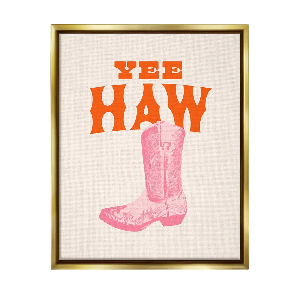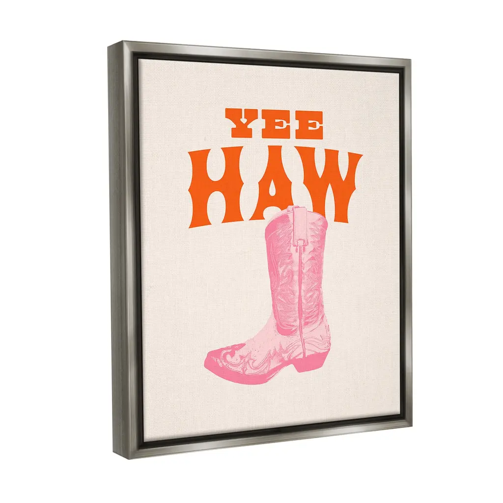 Stupell Yee Haw Cowboy Boot Framed Floater Canvas Wall Art Design By Victoria Barnes - 17 X 21 - Grey