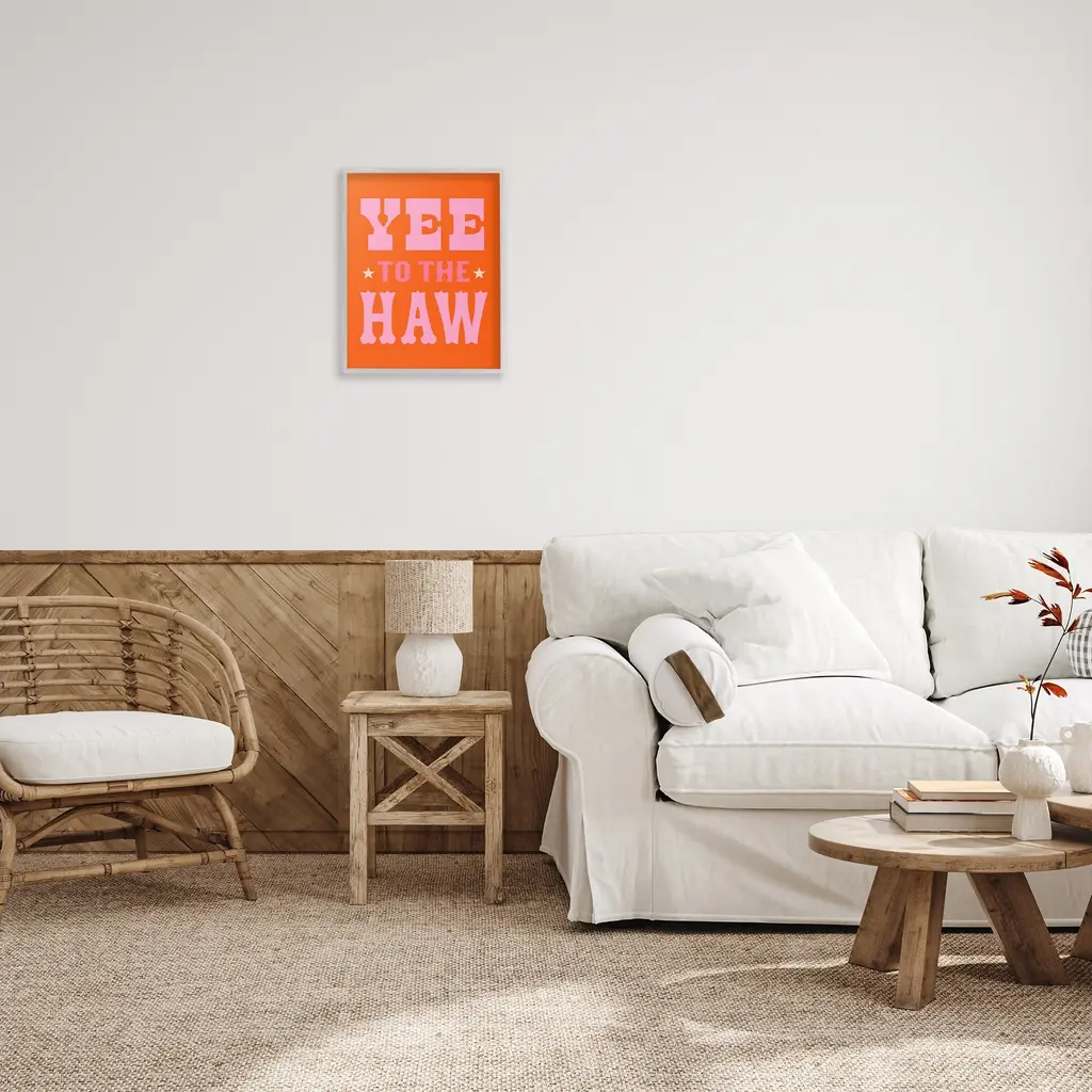 Add dimension to any room with our textured Framed Giclee Artwork. Our framed artwork is securely mounted into a 1.5-inch thick wood grain frame and ready to hang. Frames are available in three alluring styles: black, gray farmhouse and white. In addition, you should check out our oversized options if you want a statement piece. Stupell Wall Art is made in the USA.Features: Dimensions: 11 x 1.5 x 14 FramedFramed Giclee Products are available in the sizes 11"x14", 16"x20" or 24"x30". All Framed Giclee Products have a 1.5" Depth. Wall Art is Ready to Hang with Hardware Free Hanging. No installation required. For Easy Set Up Lean or Layer Artwork on Shelf or Against Wall.Our giclée prints are carefully mounted on a durable MDF backing, and then perfectly finished in a 1.5 inch thick woodgrain frame. Mounted frame colors include black, gray farmhouse and white. Made In USA.Artwork Relates To: Animal, Horse, Mammal, Saddle, Equestrian, Rodeo, Country, Southwestern, Cowboy, Cowgirl, Phrase, Humor, Yee to the HawDesign by Victoria Barnes