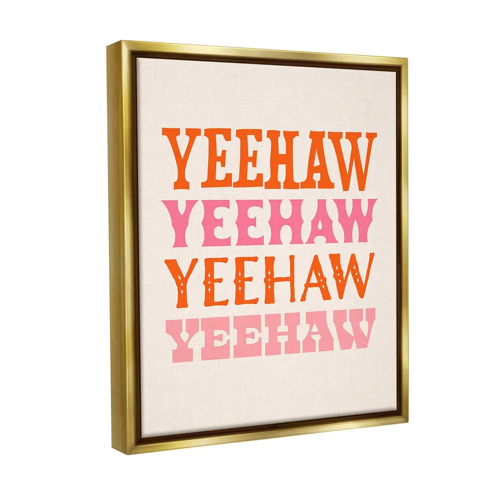 Stupell Yeehaw Country Typography Framed Floater Canvas Wall Art Design By Victoria Barnes - 25 X 31 - Gold