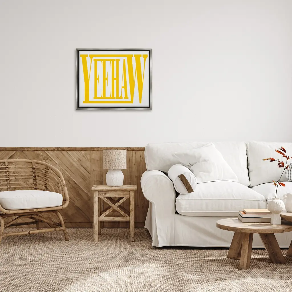 Stupell Yeehaw Yellow Typography Framed Floater Canvas Wall Art Design By Grace Popp - 31 X 25 - Grey