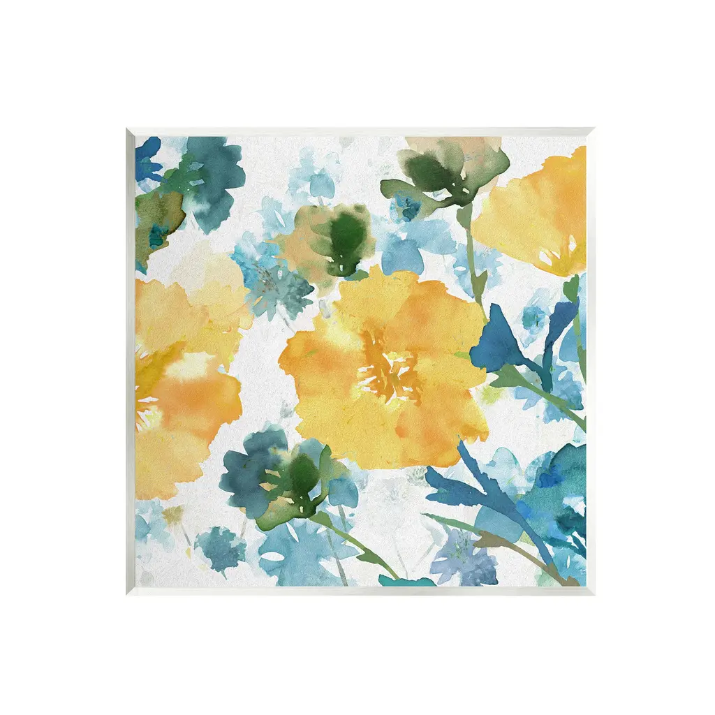 Stupell Yellow & Blue Hibiscus Wall Plaque Art Flora Kouta - 12 X 12