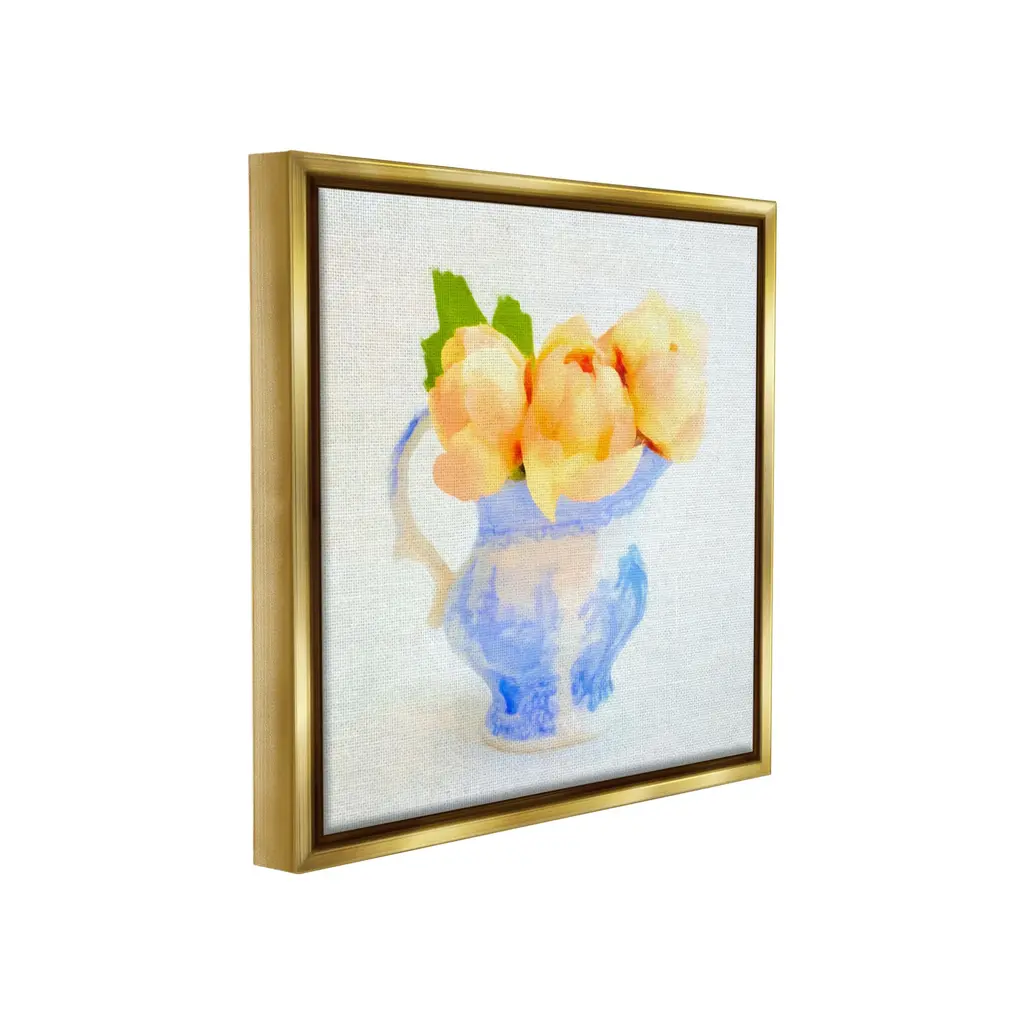 Stupell Yellow Blooms In Pitcher Framed Floater Canvas Wall Art Design By Graffitee Studios - 18 X 18 - Gold