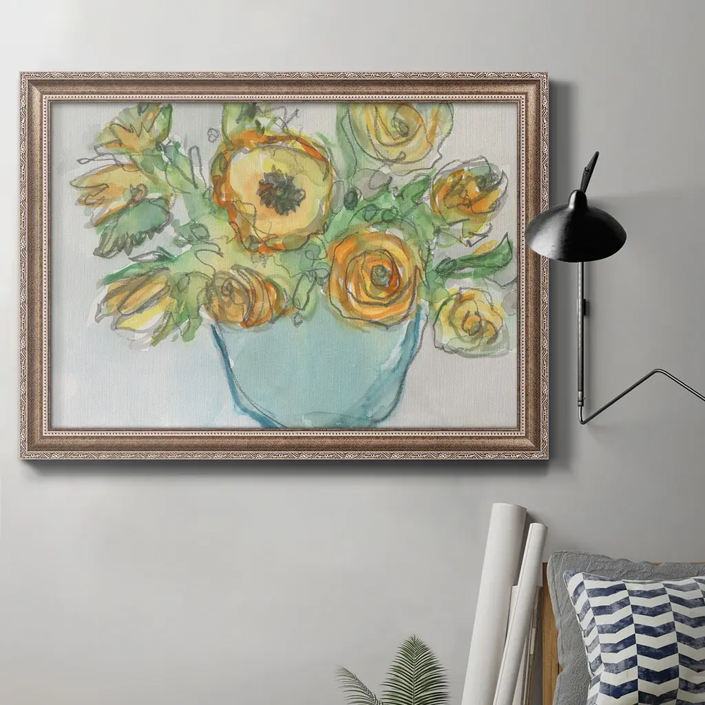 Stupell Yellow Blooms In Pitcher Framed Floater Canvas Wall Art Design By Graffitee Studios - 25 X 25 - Grey
