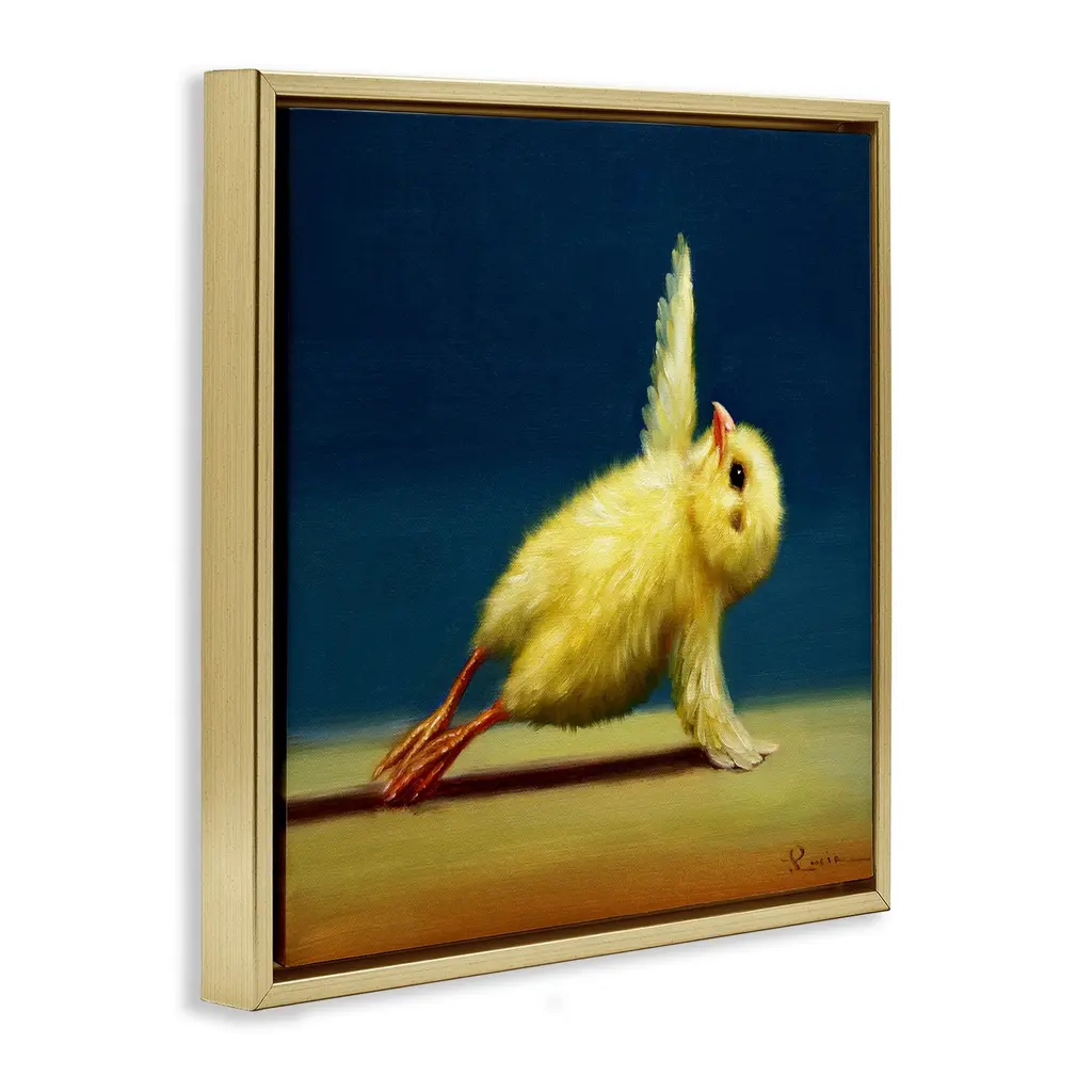 Stupell Yellow Chick Stretching Yoga Framed Floater Canvas Wall Art Design By Lucia Heffernan - 18 X 18 - Gold