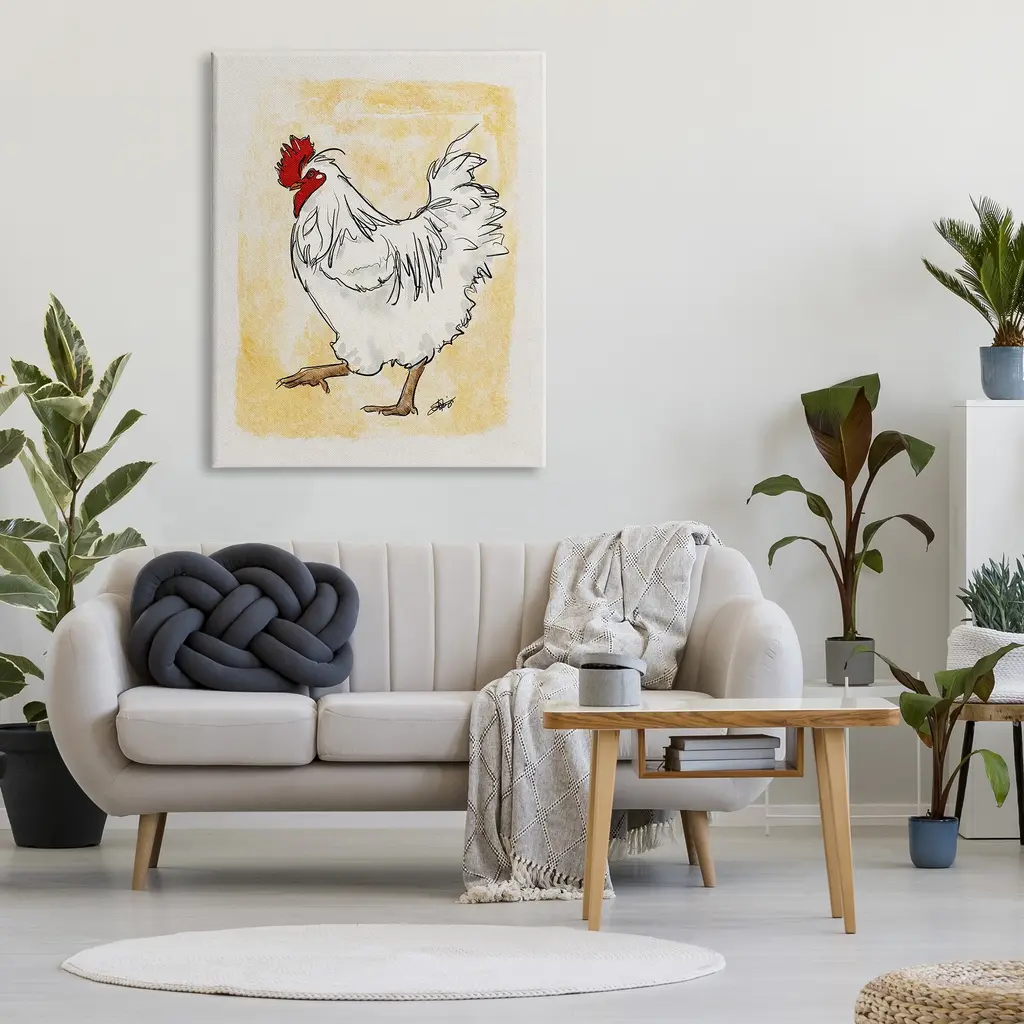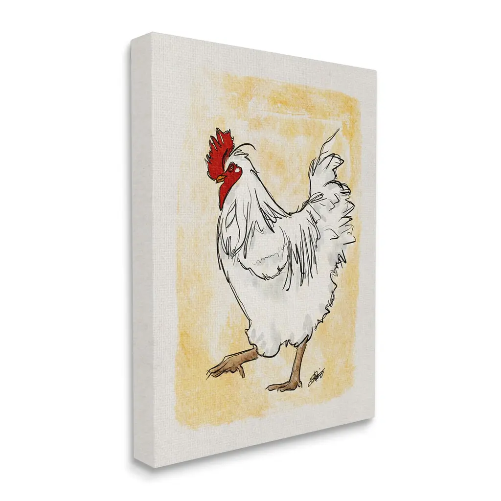 Proudly made in the USA, Our stretched canvas is created with the highest standards. We use only the highest quality inks and canvas on our in house Mimaki printers, and then hand cut and stretch each piece over a 1.5 inch thick wooden frame for hanging. The art comes ready to hang with no installation required. Room Type: Living Room, Den, Hallway, Office, Entryway, Study, Dining Room or Bedroom, Guest Room, Studio, Dorm or BoudoirFeatures: Dimensions: 16 x 1.5 x 20 InchesStretched Canvas Sizes Include Standard: 16 x 1.5 x 20 Large: 20 x 1.5 x 30 X-Large: 30 x 1.5 x 40 Oversized: 36 x 1.5 x 48Wall Art is Ready to Hang - No Installation or Hardware Needed. For Easy Set Up Lean or Layer Artwork on Shelf or Against Wall.Our stretched canvas is created with the highest standards. We use only the highest quality inks and canvas on our in house Mimaki printers, and then hand cut and stretch each piece over a 1.5 inch thick wooden frame for hanging. Made In USA.Artwork Relates To: Animal, Bird, Chicken, Rooster, Farmhouse, Drawing, PaintingDesign by Shanda Louis