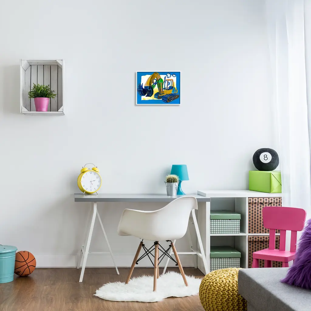 Stupell Yellow Excavator With Blue Border Wall Art, Design By Bealook Kids - 11 X 14 - White