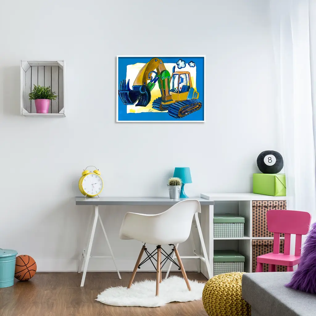 Stupell Yellow Excavator With Blue Border Wall Art, Design By Bealook Kids - 24 X 30 - White
