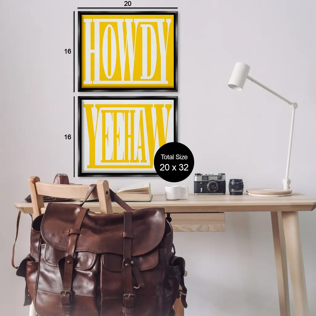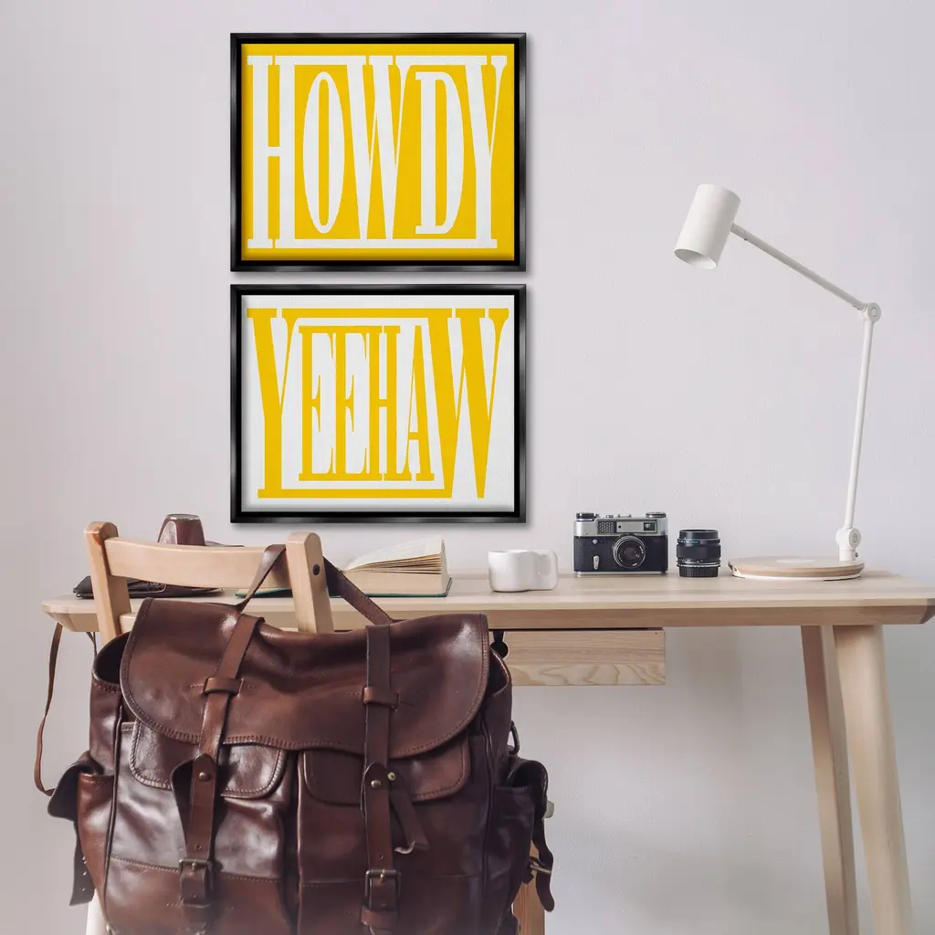 Stupell Yellow Howdy & Yeehaw Framed Floater Canvas Wall Art Design By Grace Popp (Set Of 2) - 21 X 17 - Black