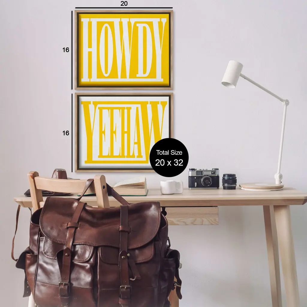Stupell Yellow Howdy & Yeehaw Framed Floater Canvas Wall Art Design By Grace Popp (Set Of 2) - 21 X 17 - Brown
