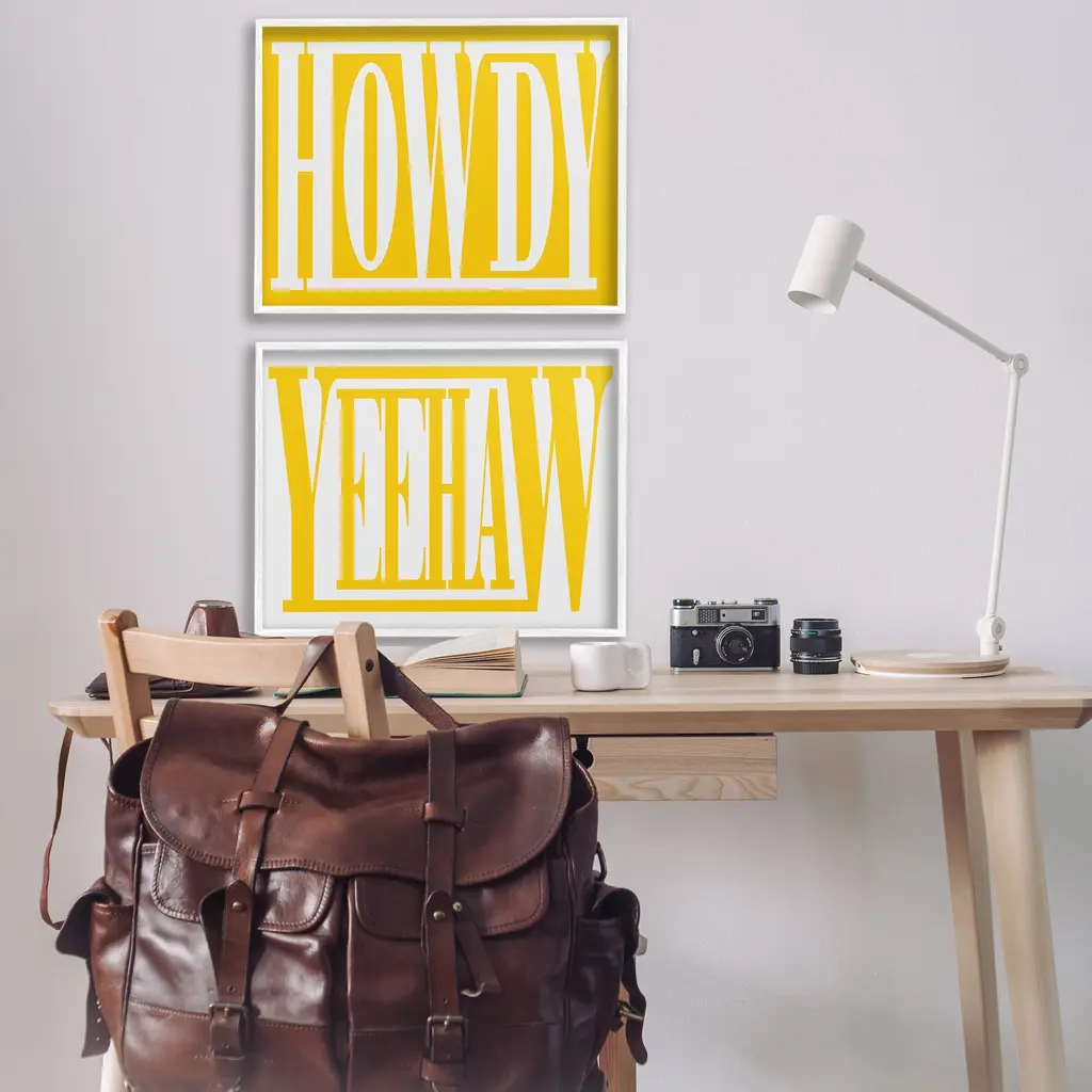 Stupell Yellow Howdy & Yeehaw Framed Giclee Art Design By Grace Popp (Set Of 2) - 30 X 24 - White
