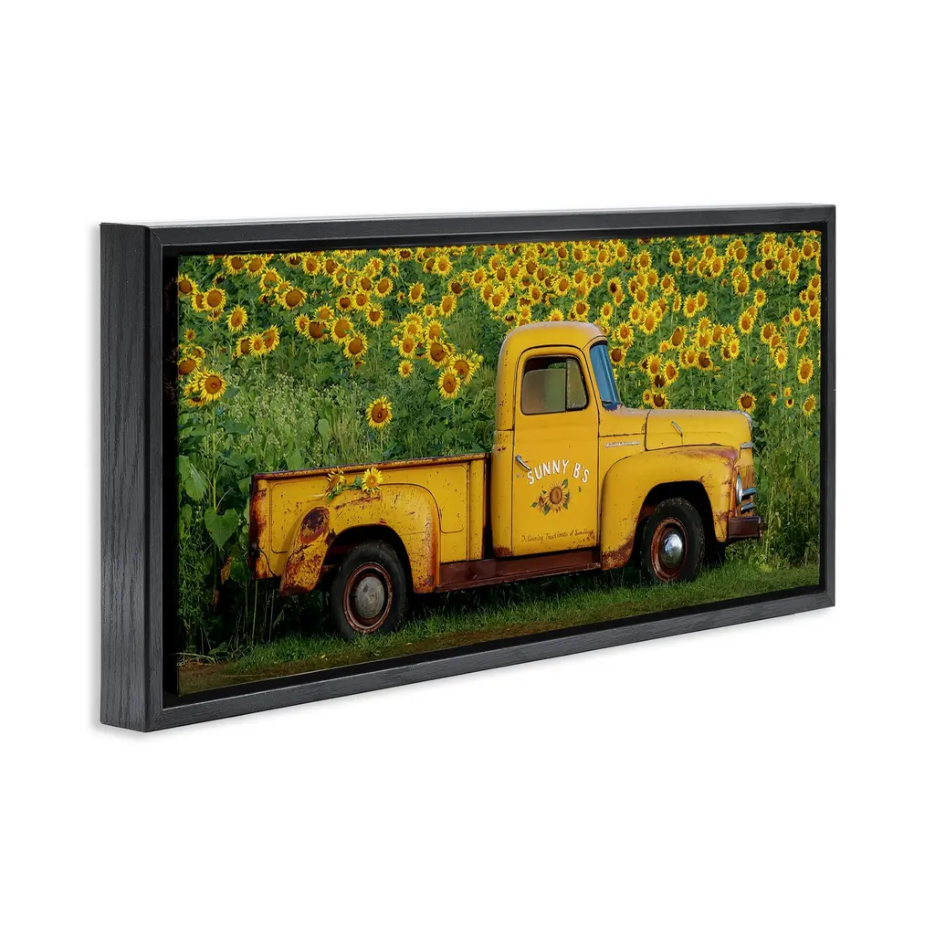 Elevate your home or office to the next level with Stupell Framed Floating Canvas Wall Art. Our premium hand-stretched canvas is mounted securely into a sturdy lightweight frame. The museum-style gap between the wrapped canvas and the box frame gives the illusion of floating artwork. Stupell Wall Art is made in the USA.Features: Dimensions: 25 x 1.7 x 11 Frame, 24 x 1.5 x 10 Canvas ArtFloating Frame Canvas Products are available in sizes 25"x11" and 31"x14". All Floating Frame Canvas Products have a 1.7" Depth.Wall Art is Ready to Hang with Hardware Free Hanging. No Installation required. For Easy Set Up Lean or Layer Artwork on Shelf or Against Wall. Artwork is Permently Fixed into the Frame.Our elevated 1.7" Thick Floating Frame is the perfect complement to our canvas style Wall Art. We use only the highest quality inks in house with industry leading printing solutions. Canvas is hand stretched over a durable wood foundation and then mounted securly into a Modern Box Frame. Made in the USA.Artwork Relates To: Truck, Vehicle, Pickup Truck, Flower, Plant, Sunflower, Nature, Meadow, CountryDesign by Carrie Ann Grippo-Pike