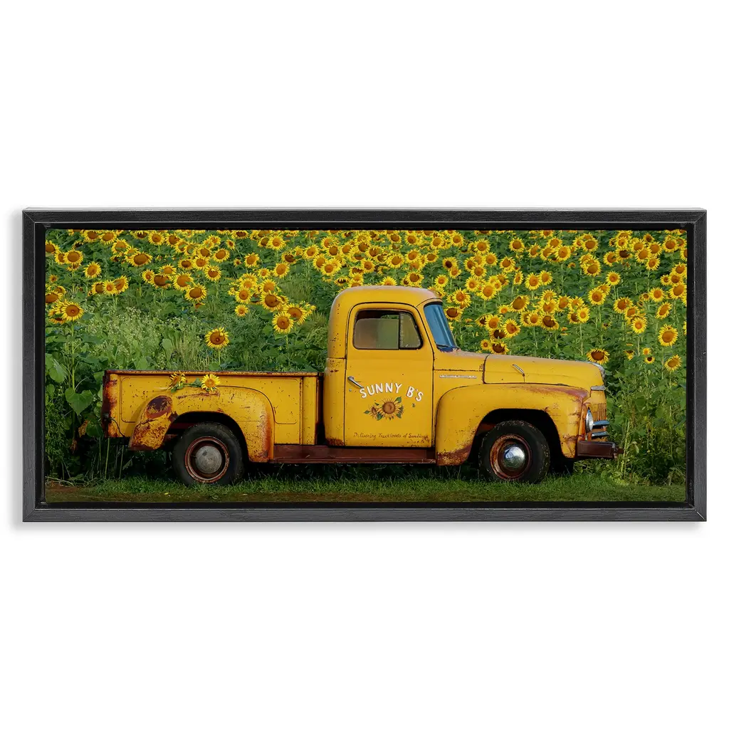 Elevate your home or office to the next level with Stupell Framed Floating Canvas Wall Art. Our premium hand-stretched canvas is mounted securely into a sturdy lightweight frame. The museum-style gap between the wrapped canvas and the box frame gives the illusion of floating artwork. Stupell Wall Art is made in the USA.Features: Dimensions: 25 x 1.7 x 11 Frame, 24 x 1.5 x 10 Canvas ArtFloating Frame Canvas Products are available in sizes 25"x11" and 31"x14". All Floating Frame Canvas Products have a 1.7" Depth.Wall Art is Ready to Hang with Hardware Free Hanging. No Installation required. For Easy Set Up Lean or Layer Artwork on Shelf or Against Wall. Artwork is Permently Fixed into the Frame.Our elevated 1.7" Thick Floating Frame is the perfect complement to our canvas style Wall Art. We use only the highest quality inks in house with industry leading printing solutions. Canvas is hand stretched over a durable wood foundation and then mounted securly into a Modern Box Frame. Made in the USA.Artwork Relates To: Truck, Vehicle, Pickup Truck, Flower, Plant, Sunflower, Nature, Meadow, CountryDesign by Carrie Ann Grippo-Pike