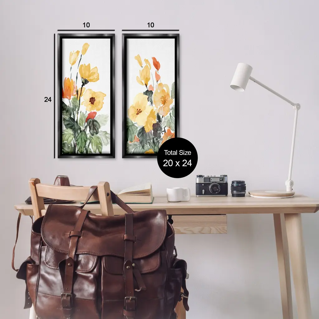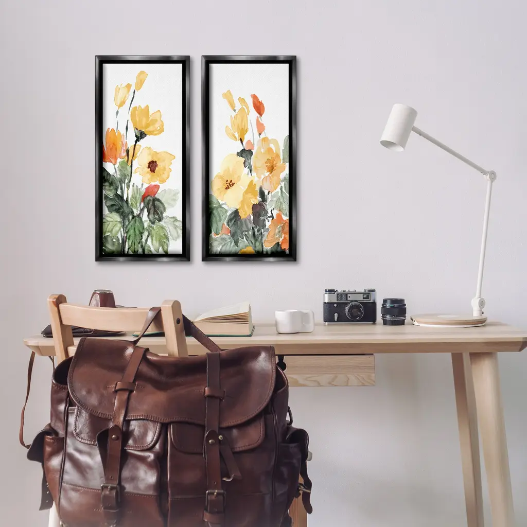 Stupell Yellow Spring Flowers Framed Floater Canvas Wall Art Design By Lanie Loreth (Set Of 2) - 11 X 25 - Black